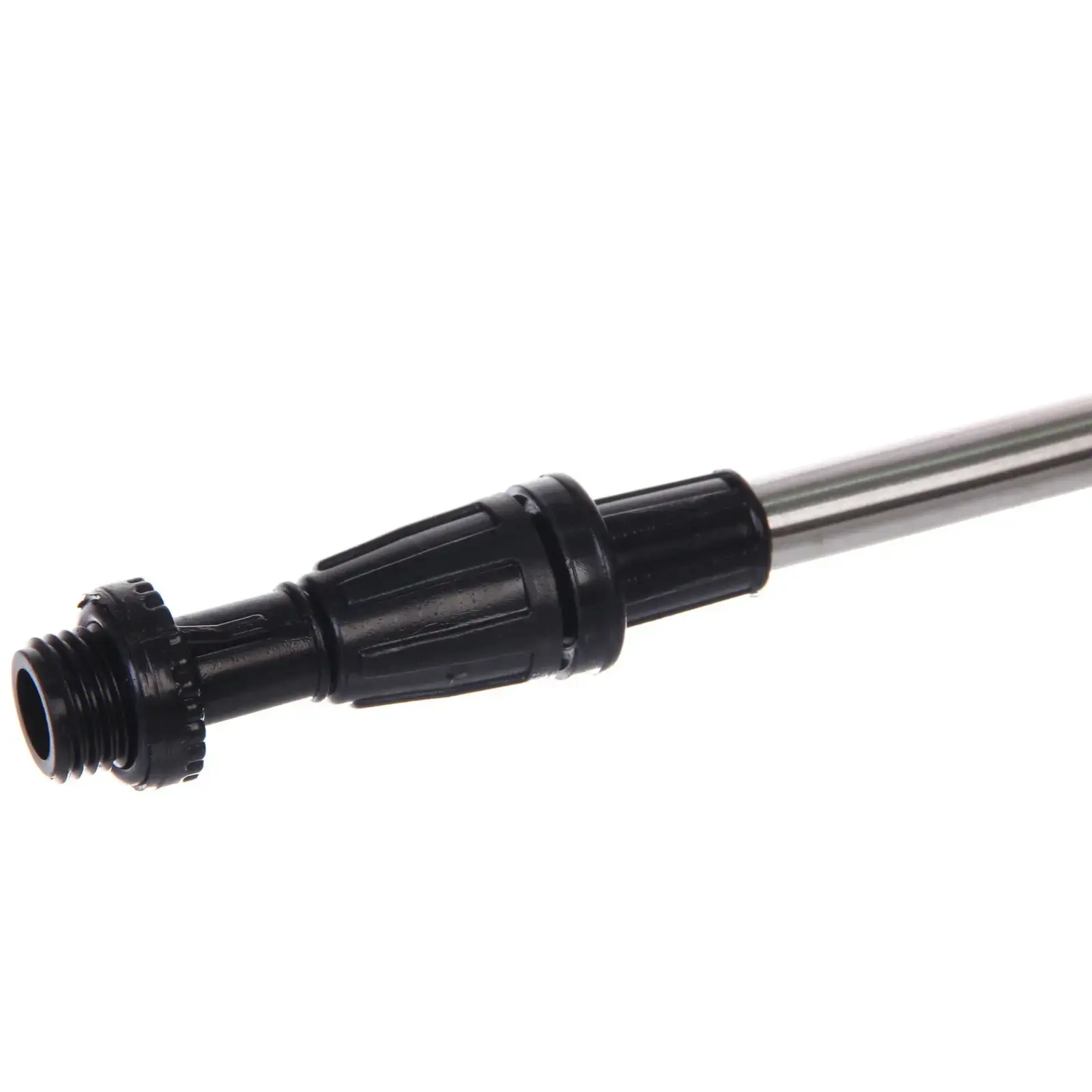 Опрыскиватель выполнен из прочного пластика и металла, что обеспечивает его долговечность. Основной цвет инструмента — черный, с яркими элементами, что делает его стильным и современным. Насадки имеют различные цвета и формы, что позволяет легко различать их и использовать по назначению. Этот инструмент идеально подходит как для профессионалов, так и для любителей садоводства.