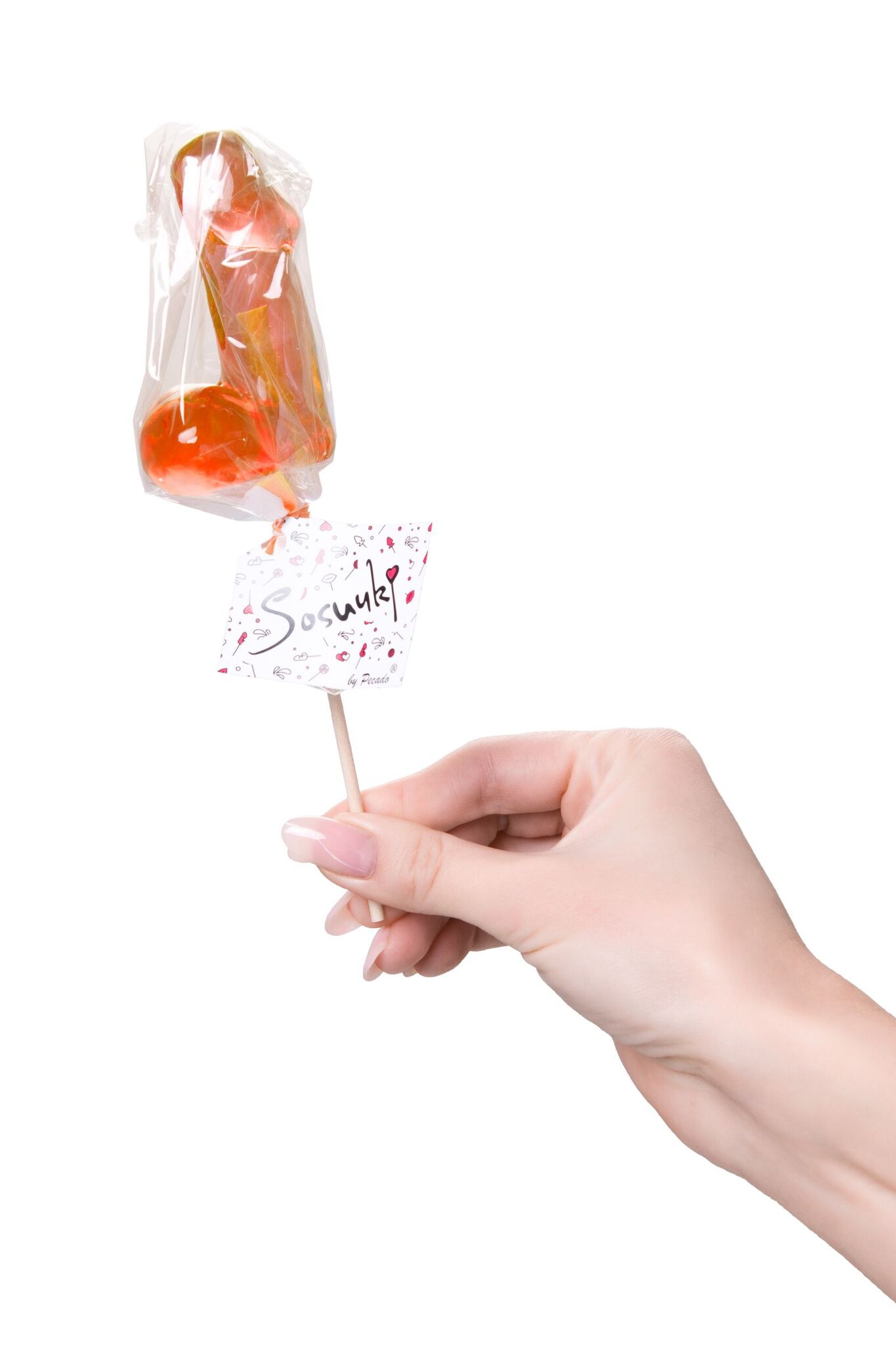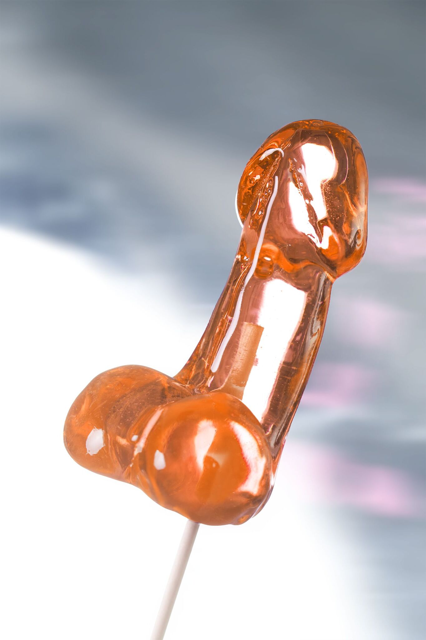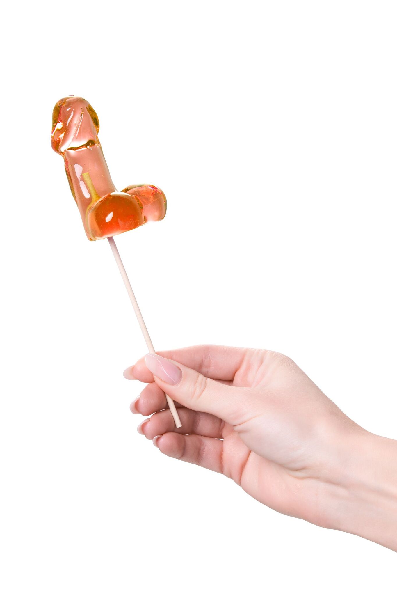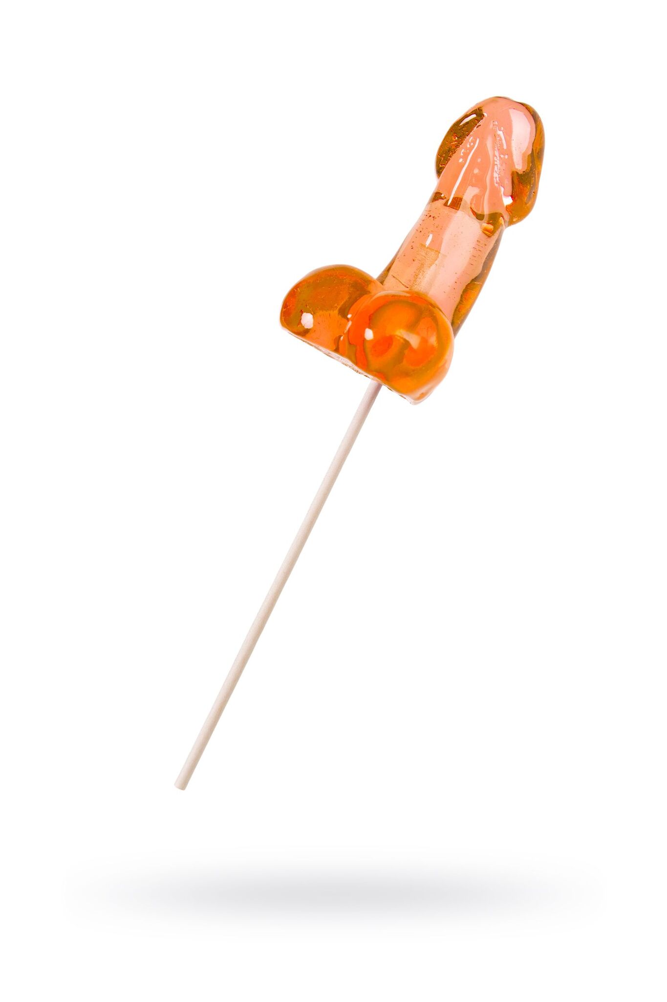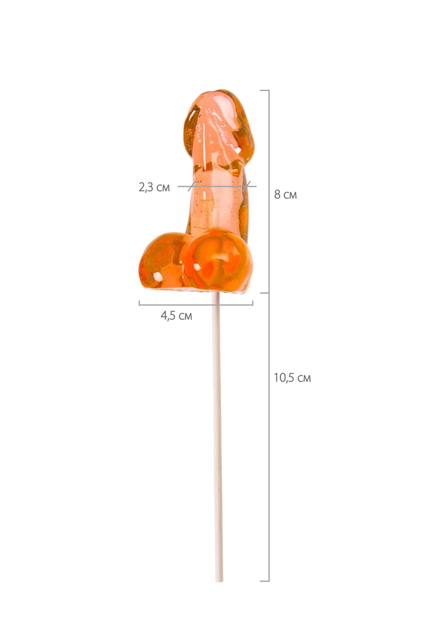 Леденец на палочке в форме фаллоса, 8см, оранжевый, 80гр, вкус амаретто