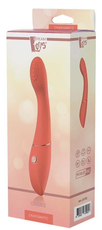 Длина вибромассажера составляет 22 см, а диаметр — 4,2 см, что делает его компактным и удобным для хранения. Цвет — оранжевый, что добавляет яркости и настроения. Этот товар предназначен для взрослых и подходит для использования как в одиночку, так и в паре. Вибромассажер Candice — это не просто игрушка, это ваш личный источник удовольствия и расслабления.