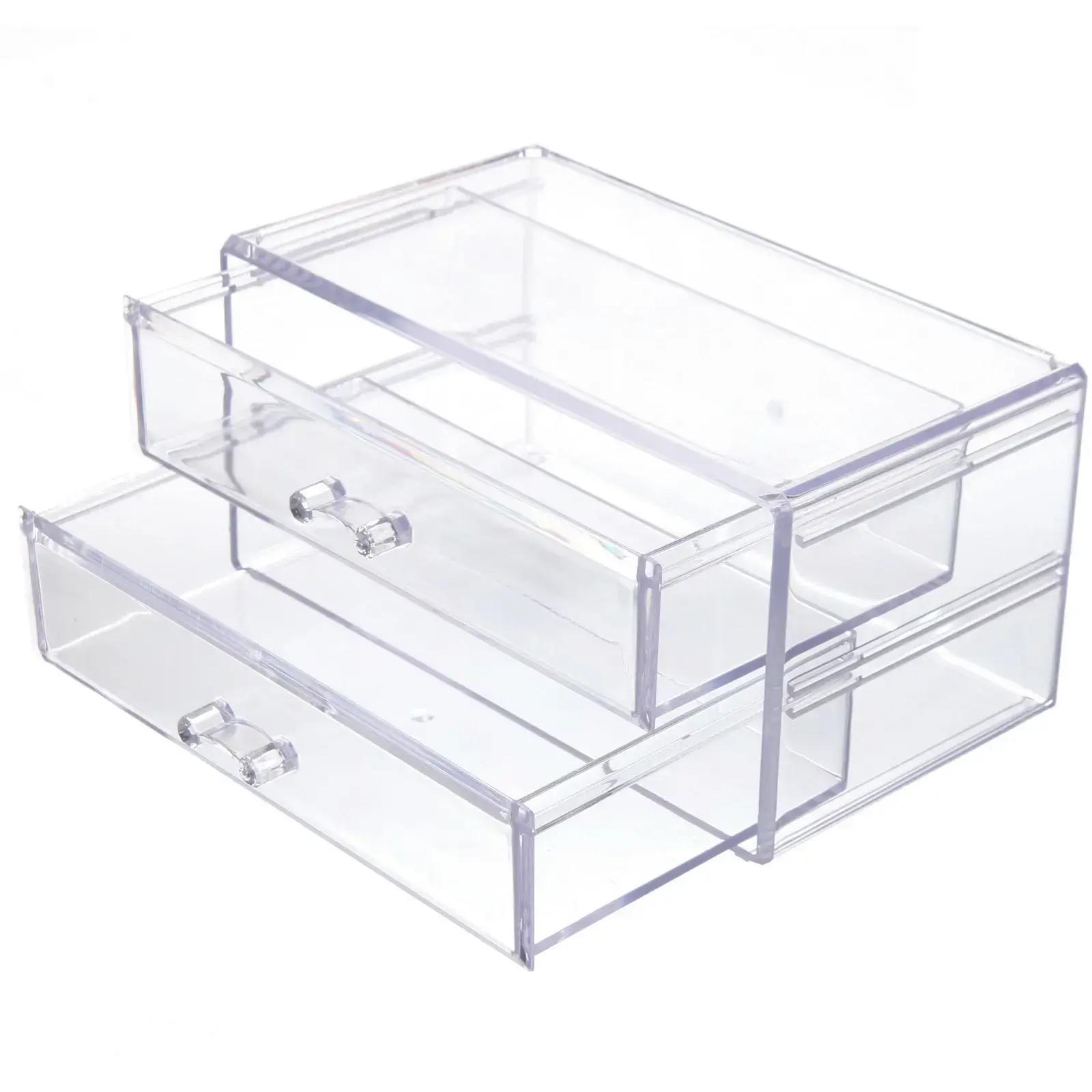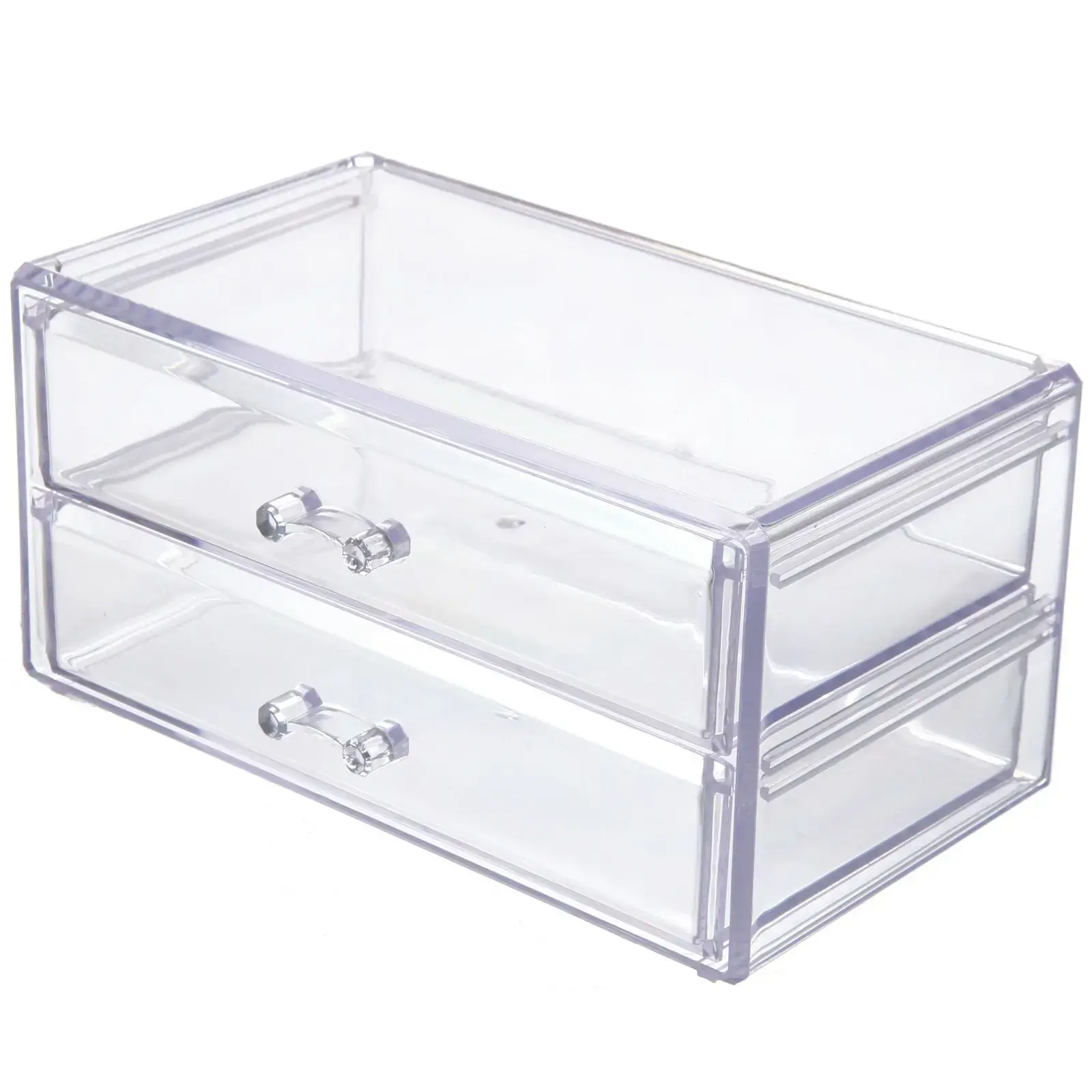 Органайзер выполнен из качественного пластика, что гарантирует долговечность и надежность. Минималистичный дизайн без лишних украшений позволяет ему гармонично сочетаться с любым стилем. Ящики с округлыми ручками обеспечивают легкий доступ к содержимому, а два отделения позволяют удобно распределить вещи по категориям.