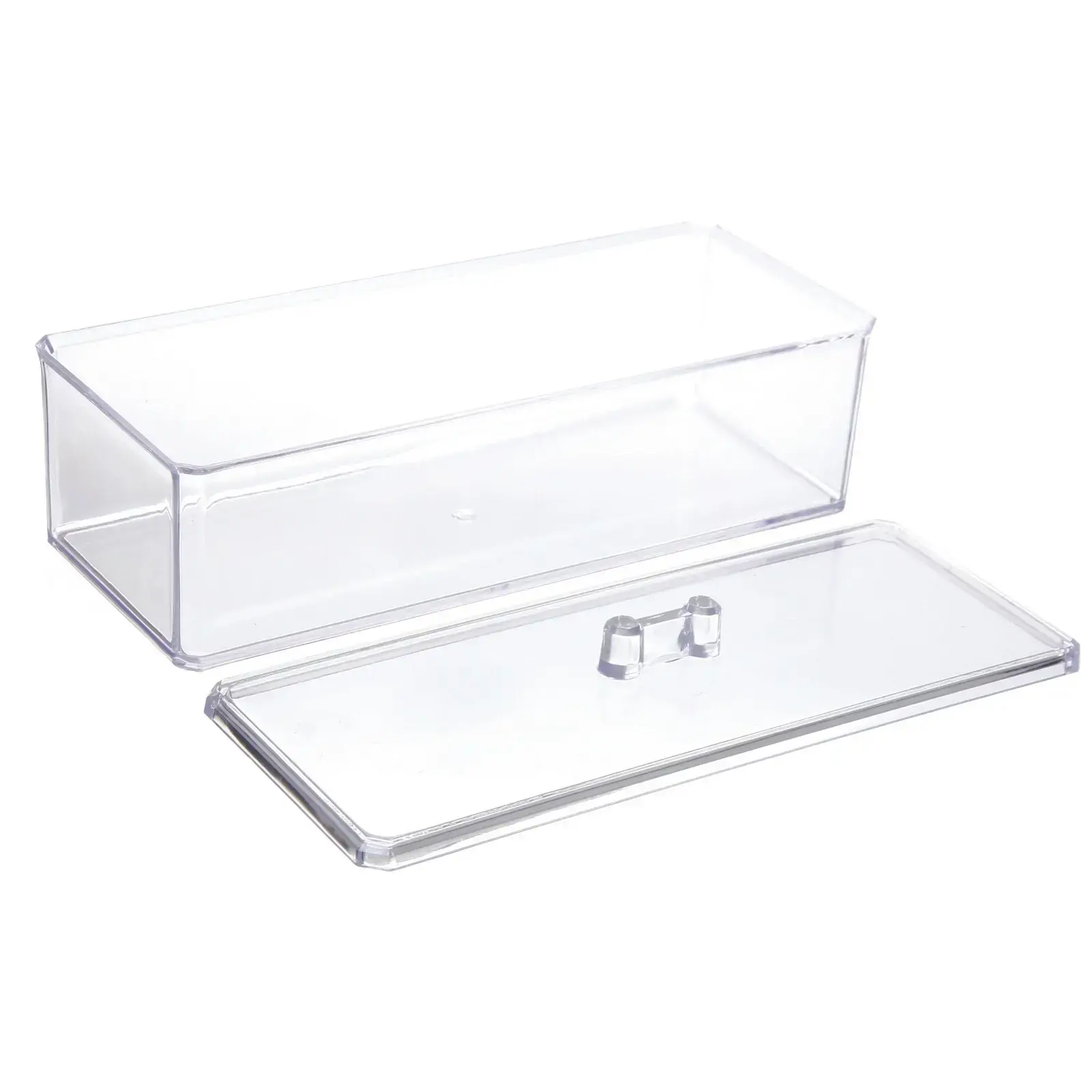Этот органайзер идеально подходит для хранения косметики, канцелярских принадлежностей или мелких бытовых предметов. Его размеры 23х9.2х7 см делают его компактным, а прямоугольная форма позволяет удобно размещать его на полках или в ящиках. Прозрачный материал обеспечивает легкий доступ к содержимому, а крышка с выступами позволяет легко открывать и закрывать контейнер.