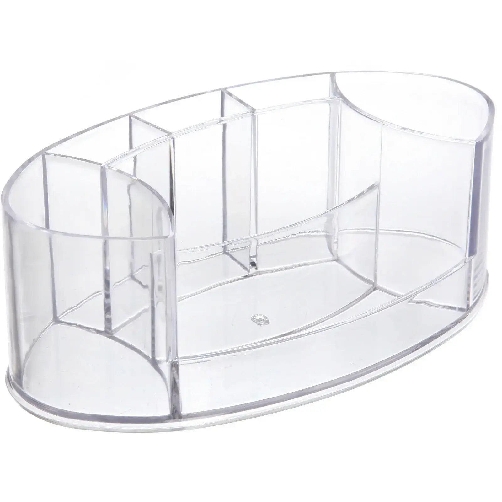Органайзер выполнен из прочного пластика, что гарантирует долговечность и надежность. Прозрачный материал позволяет видеть содержимое, что экономит ваше время на поиски. Овальная форма и гладкие стенки делают его не только функциональным, но и стильным элементом интерьера.