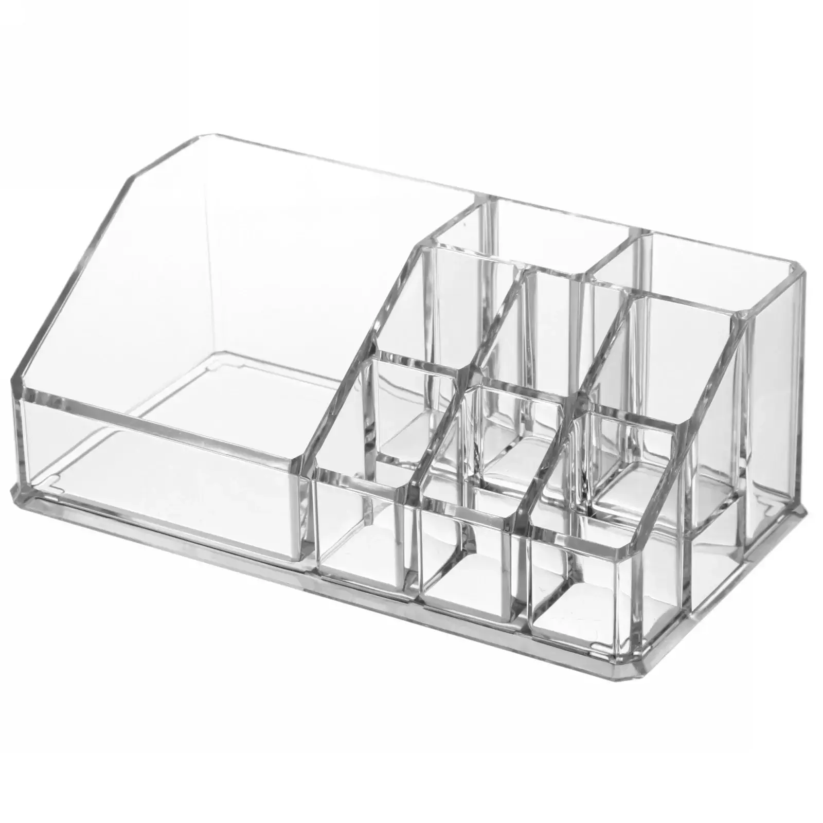 Размеры органайзера: 17 см в длину, 9 см в ширину и 6,5 см в высоту. Он имеет 9 отделений, что позволяет удобно сортировать и хранить различные предметы. Прозрачный материал не только эстетичен, но и практичен, так как позволяет видеть содержимое без необходимости открывать органайзер.