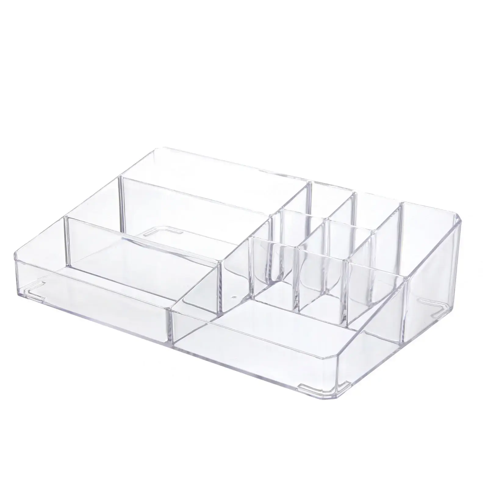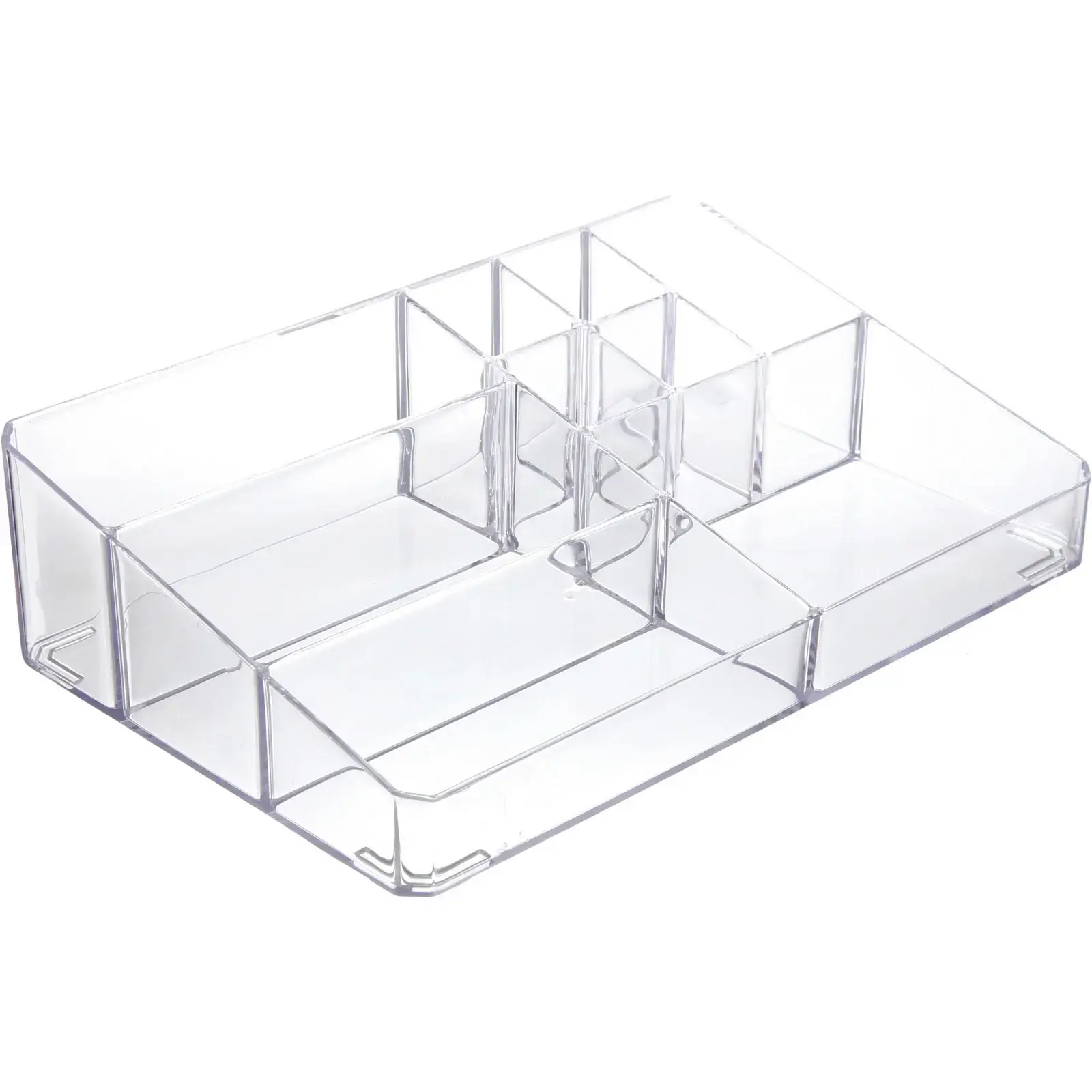 Органайзер выполнен из прочного и легкого пластика, что обеспечивает его долговечность и простоту в уходе. Прозрачный материал позволяет быстро находить нужные вещи, экономя ваше время. Наклонные стенки и разнообразные отделения делают его использование максимально удобным.