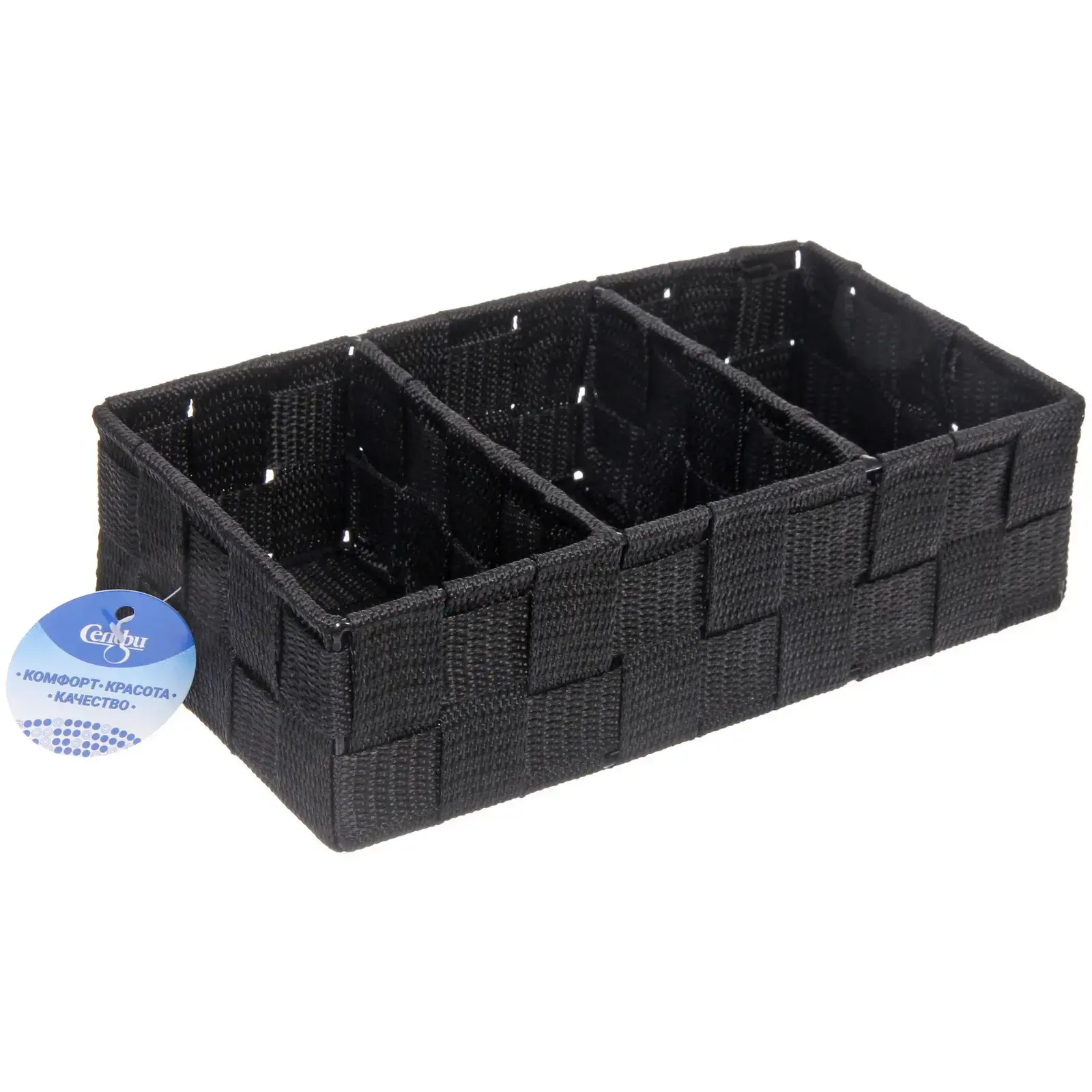Создайте порядок и уют в вашем доме с органайзером для хранения «ФАРТЕГО». Этот стильный и функциональный аксессуар поможет вам организовать пространство, сохраняя при этом эстетичный вид. Его черный цвет и плетеная текстура делают его идеальным дополнением к любому интерьеру, а три отделения обеспечивают удобное хранение мелких предметов.