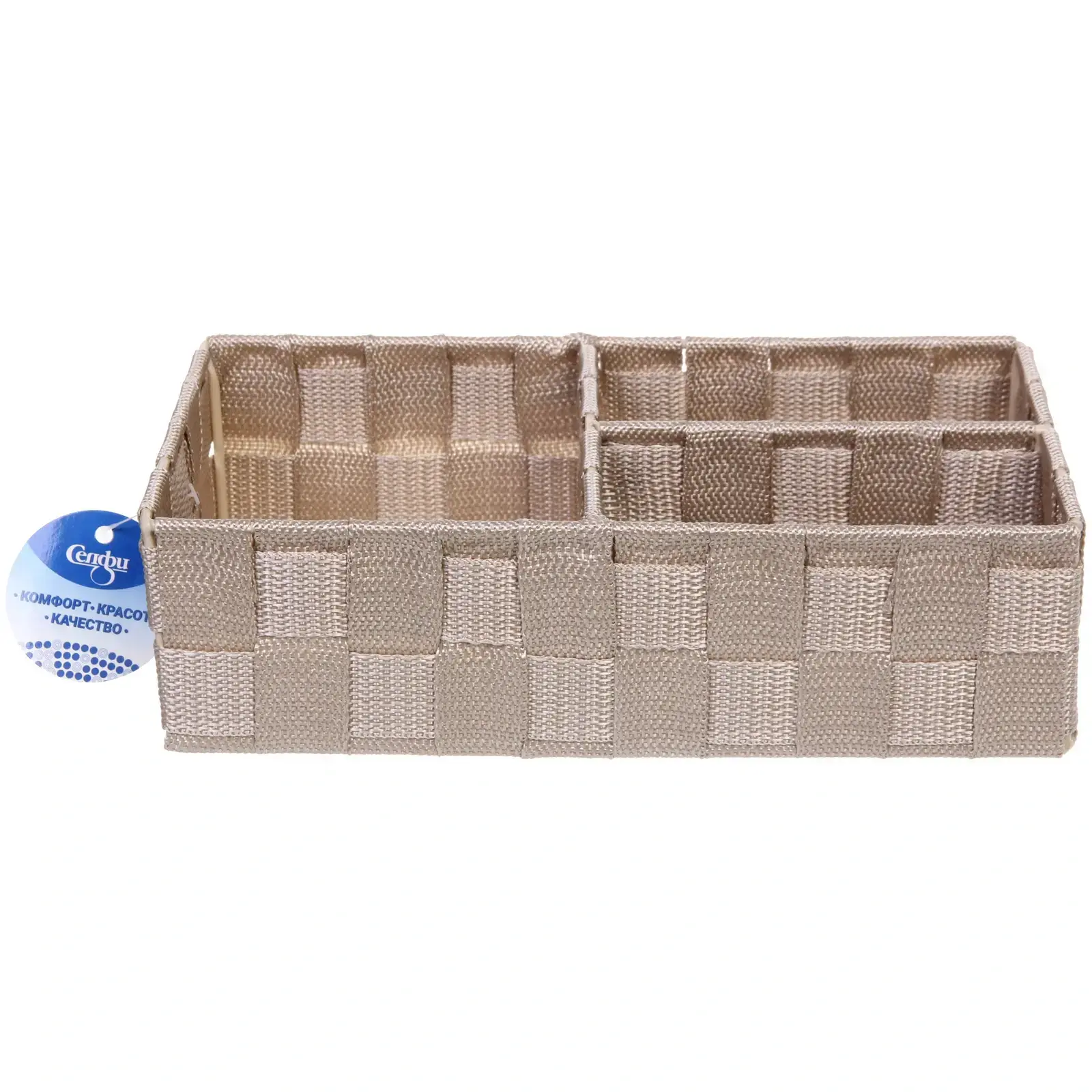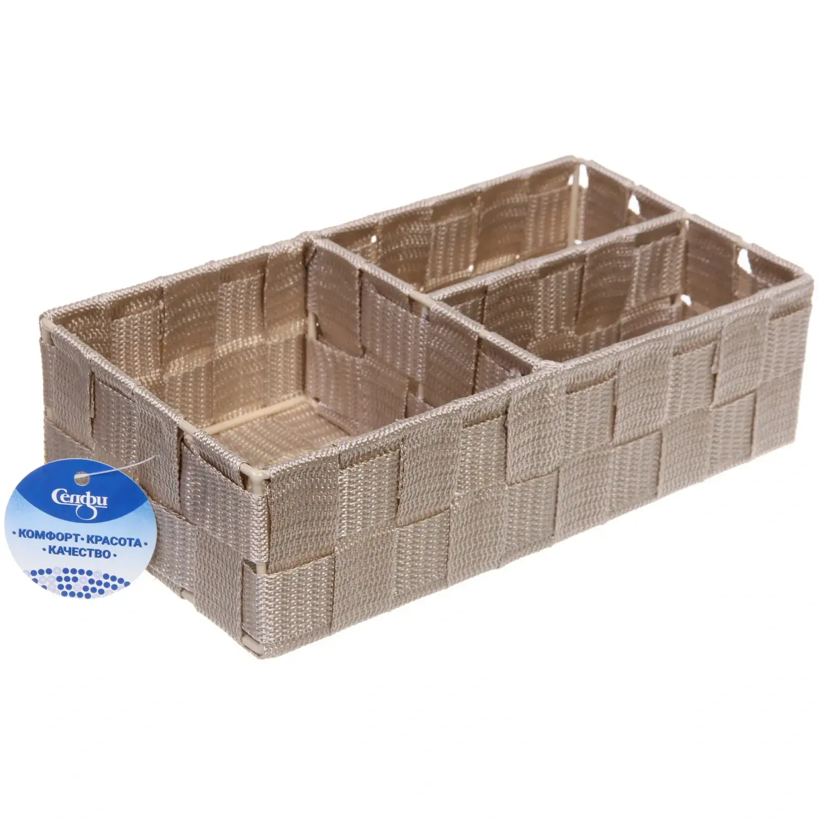 Ищете идеальное решение для хранения мелочей? Органайзер для хранения «ФАРТЕГО» в цвете капучино — это не только стильный, но и функциональный аксессуар, который поможет вам поддерживать порядок в вашем доме. Его компактные размеры 25х13х6,7 см позволяют разместить его в любом уголке, а текстурированный плетеный материал добавляет изысканности и уюта.