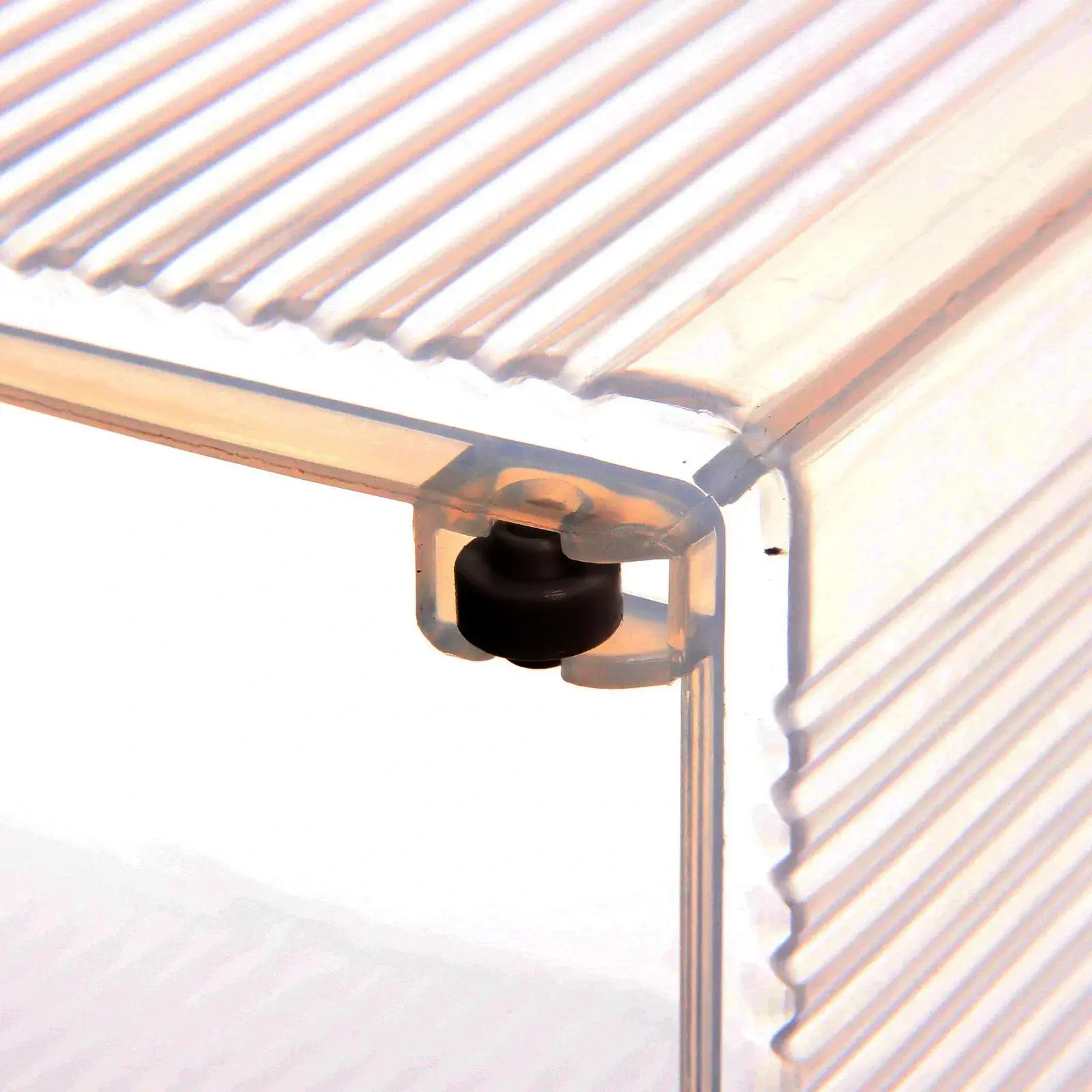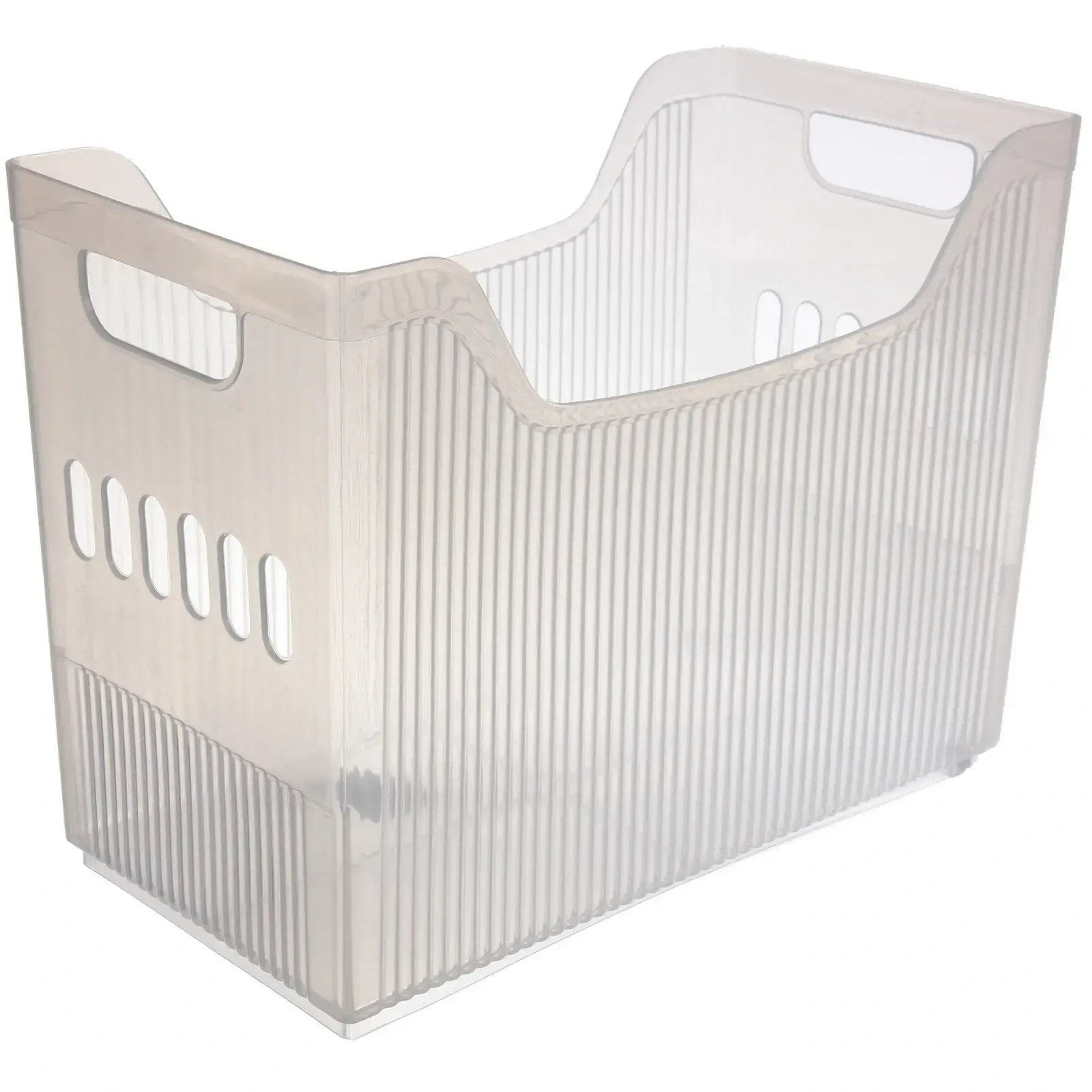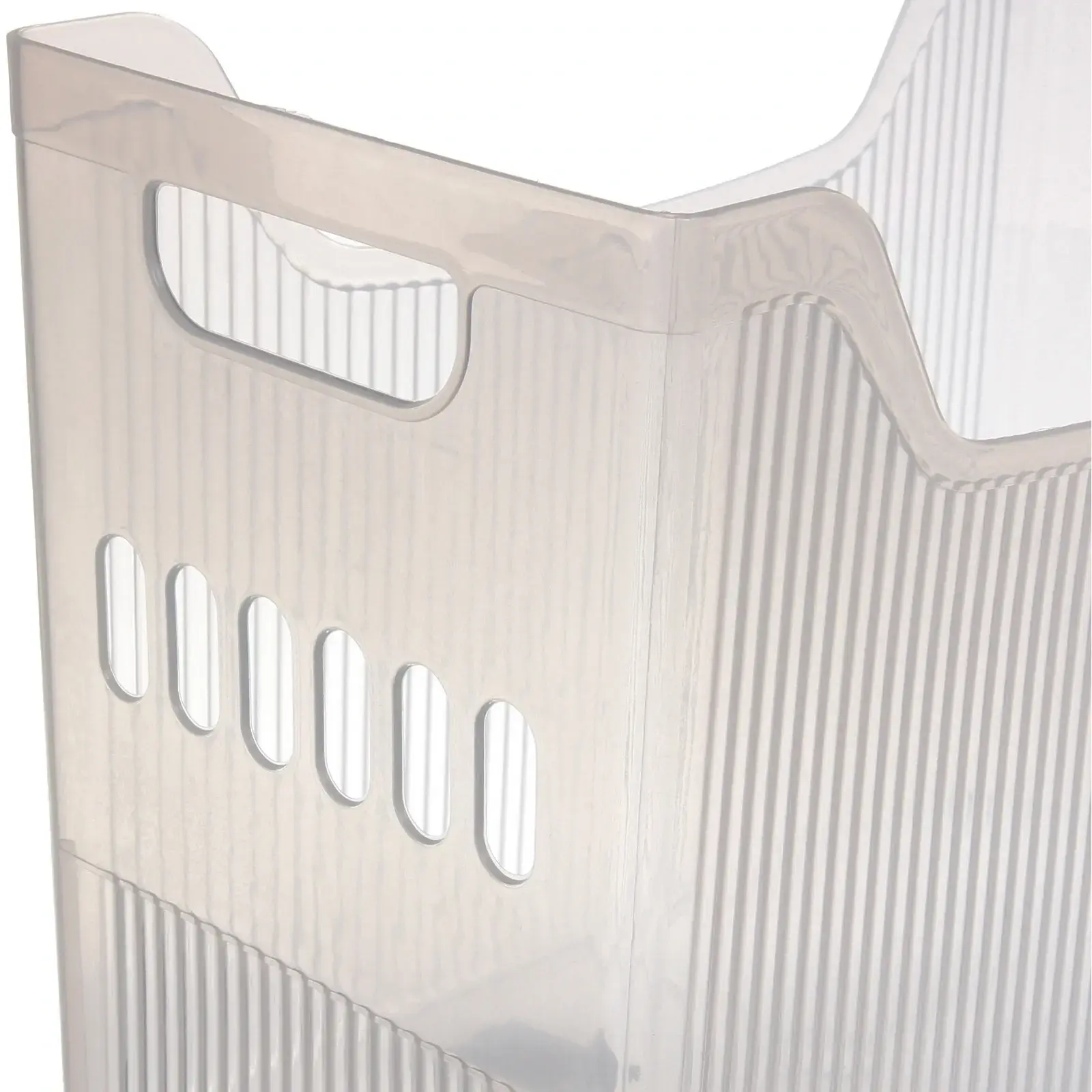 Органайзер выполнен из прочного пластика, что гарантирует его долговечность и надёжность. Вертикальные рифлёные линии на поверхности не только придают ему стильный вид, но и обеспечивают дополнительный захват при переноске. Ручки на боковых стенках делают использование органайзера ещё более удобным.