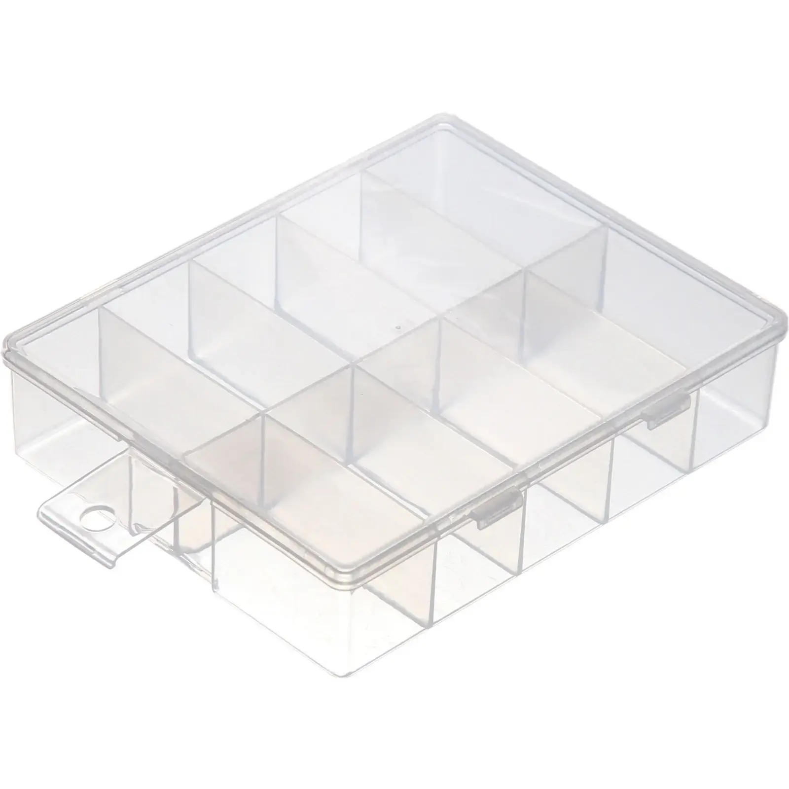 Размеры органайзера: 12,5 см в длину, 10 см в ширину и 3 см в высоту. Он состоит из 10 ячеек, что позволяет удобно организовать хранение мелких предметов. Прозрачный цвет делает его универсальным и стильным дополнением к любому интерьеру.