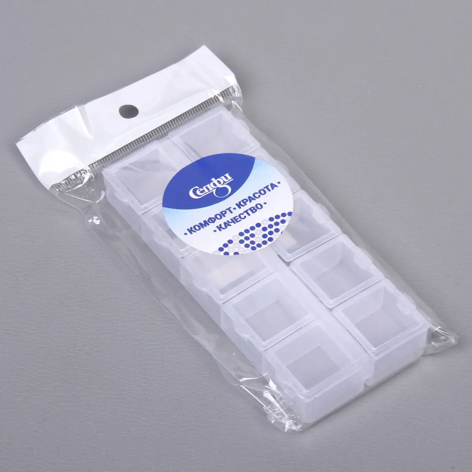 Органайзер подходит для хранения различных мелких предметов: от канцелярских принадлежностей до косметики и товаров для рукоделия. Каждая ячейка имеет крышку, что обеспечивает надежное закрытие и защиту содержимого от пыли и повреждений. Используйте его для хранения ниток, иголок, бижутерии, таблеток или даже мелких деталей для творчества. Удобный и практичный, он станет отличным решением для организации вашего пространства.