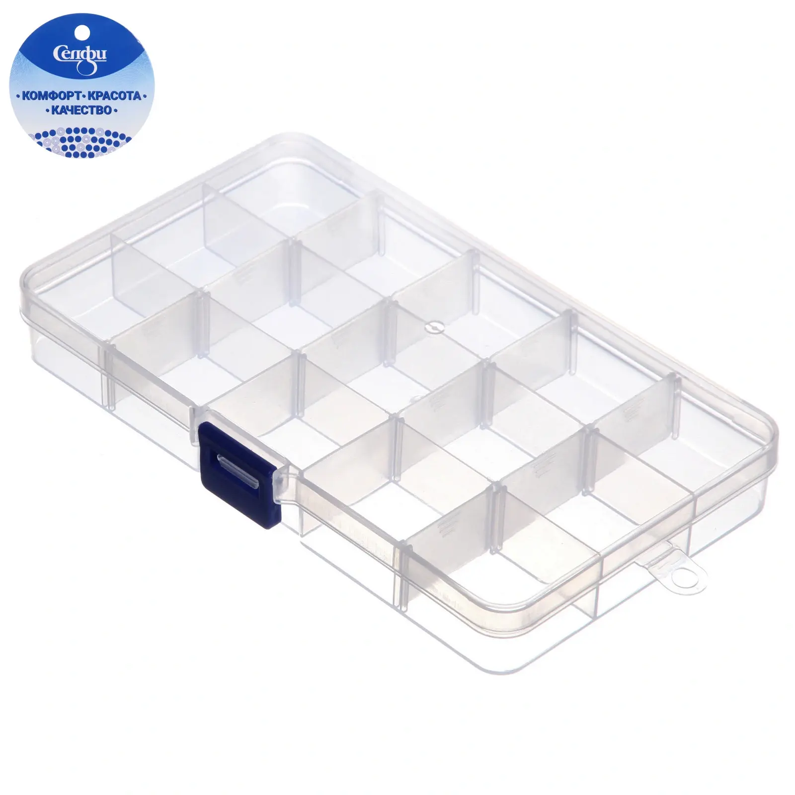 Этот органайзер идеально подходит для хранения ниток, иголок, бижутерии, косметики, таблеток и товаров для творчества. Благодаря 15 ячейкам, вы сможете удобно распределить все мелкие предметы, чтобы они всегда были под рукой. Прозрачный материал позволяет видеть содержимое, что делает использование органайзера еще более удобным.