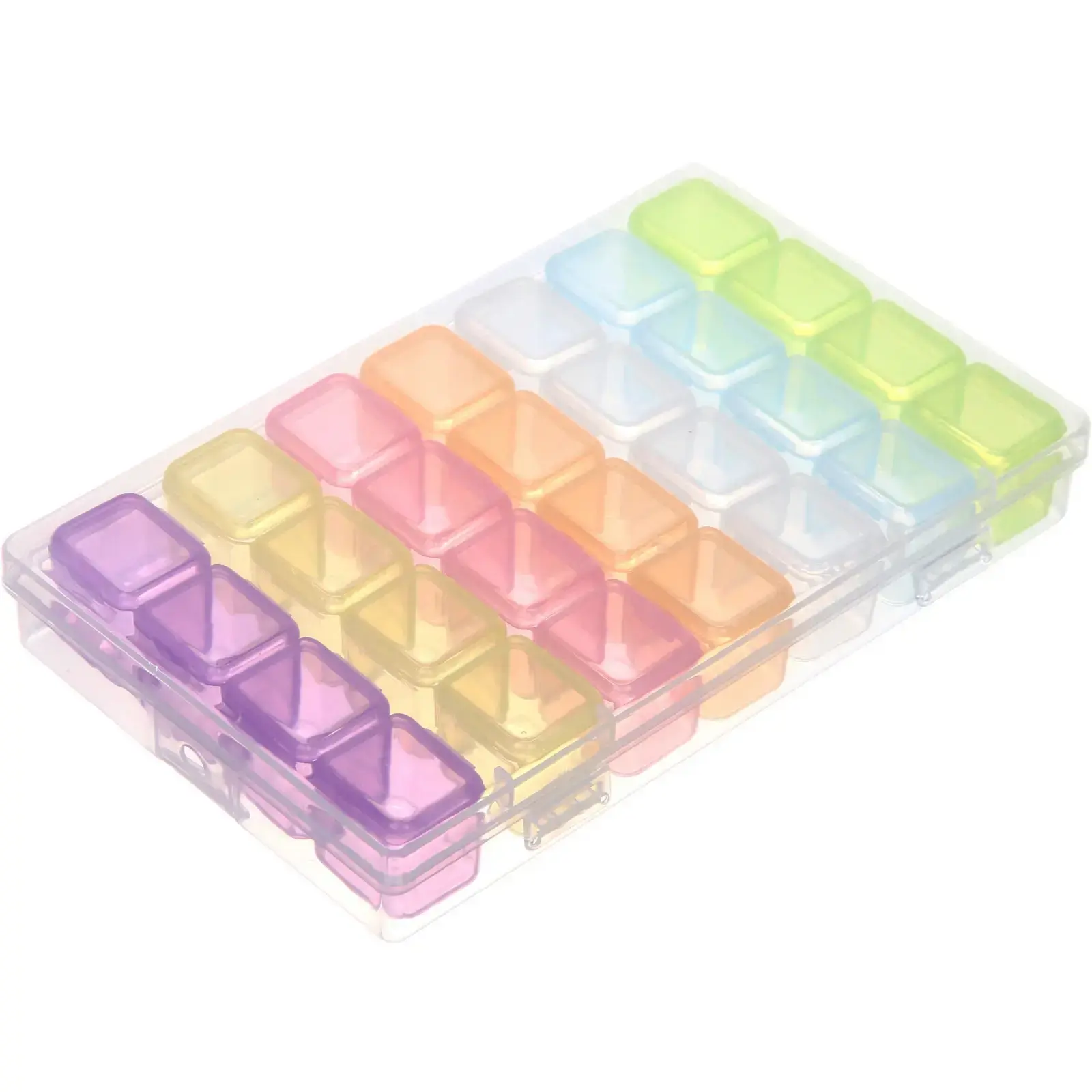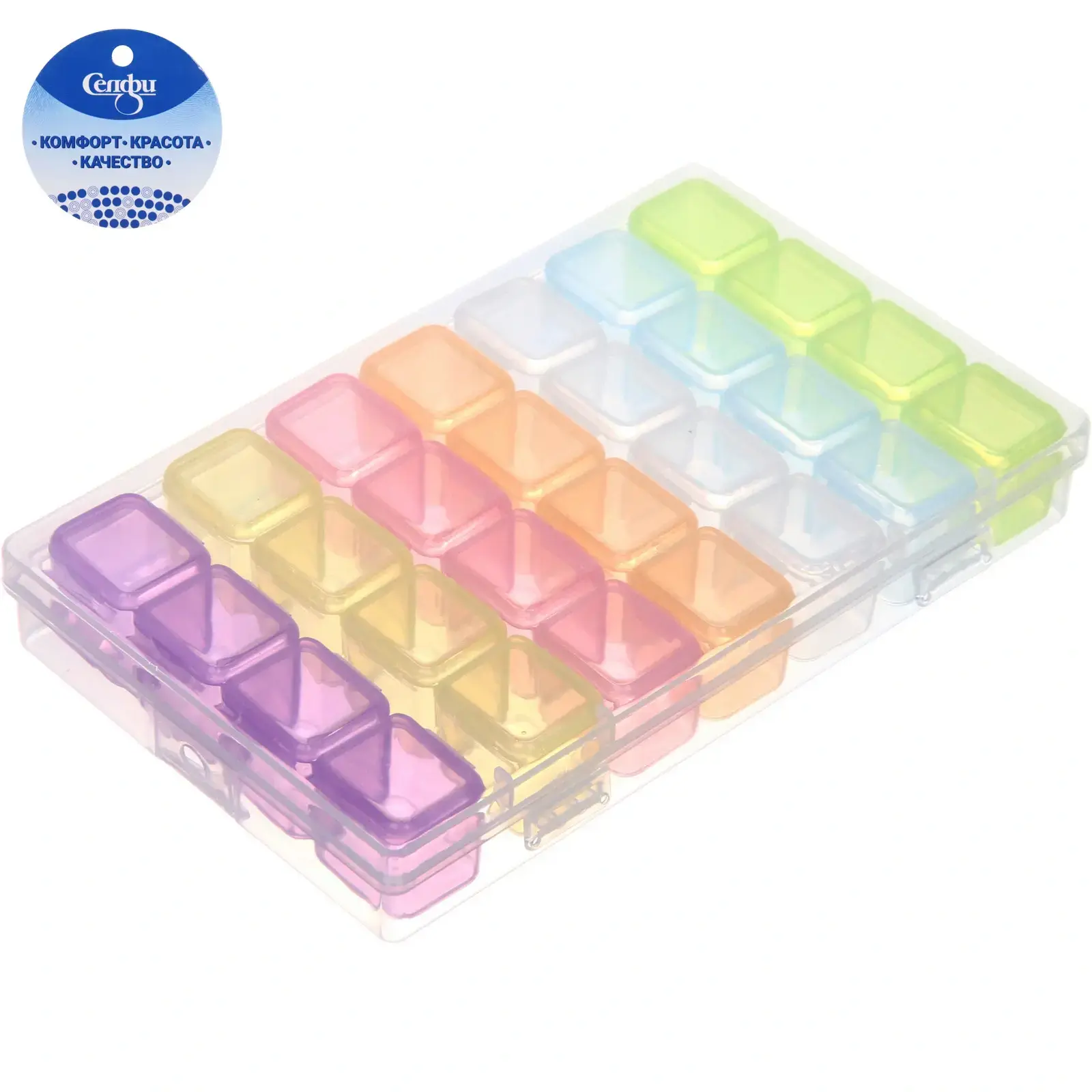 Органайзер идеально подходит для использования в домашних условиях, на работе или в творческих проектах. Его компактные размеры 17,5х10,5х2,5 см позволяют удобно разместить его на столе, в ящике или в сумке. Каждая из 28 ячеек имеет крышку с защёлкой, что обеспечивает надежное закрытие и защиту содержимого от пыли и повреждений.