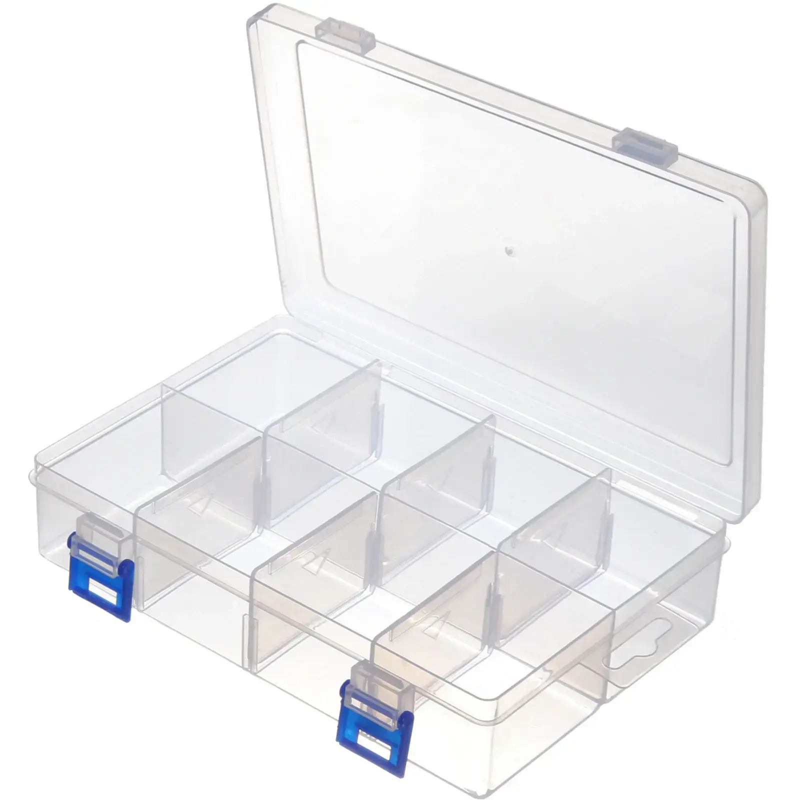 Этот органайзер подходит для хранения различных мелочей, включая товары для творчества, таблетки и канцелярские принадлежности. Благодаря прозрачным стенкам вы всегда будете видеть содержимое, что значительно упростит поиск нужных вещей. Контейнер легко открывается и закрывается с помощью надежных синих защелок, что обеспечивает безопасность хранения.