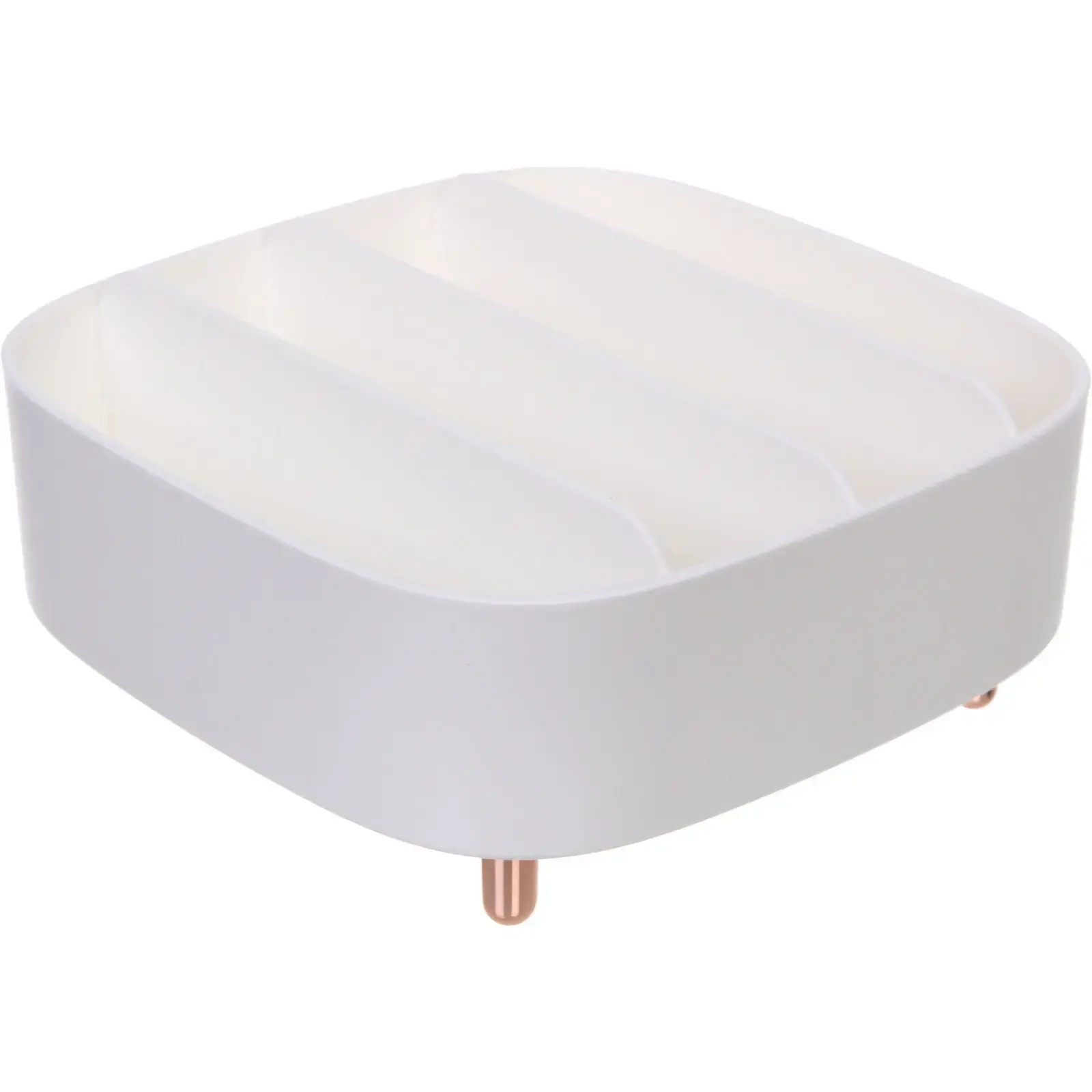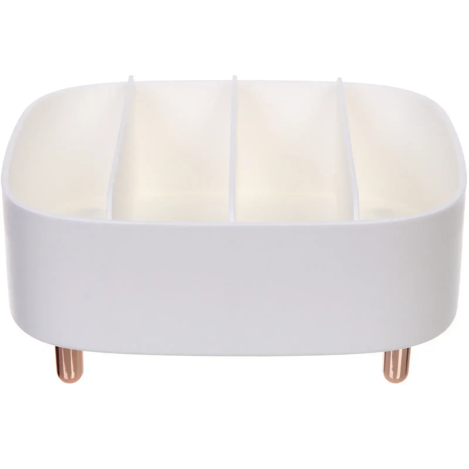 Органайзер имеет 4 отделения, что позволяет удобно распределить пространство для хранения. Он идеально подходит для использования в ванной, на столе или в шкафу. Благодаря компактным размерам 20х8,6х20,6 см, он легко впишется в любое место, не занимая много пространства.