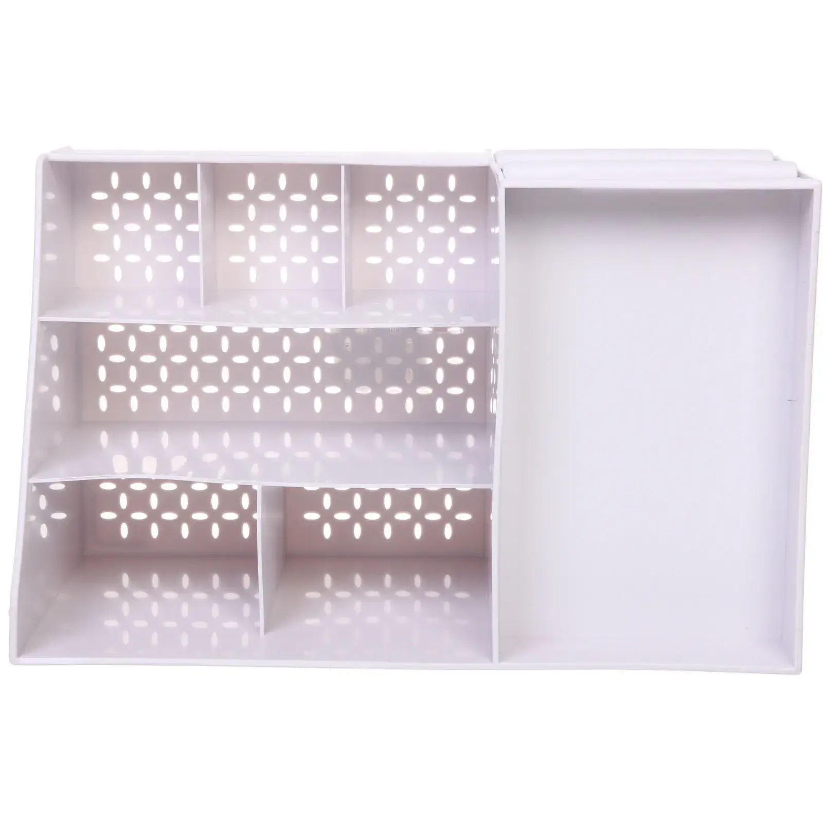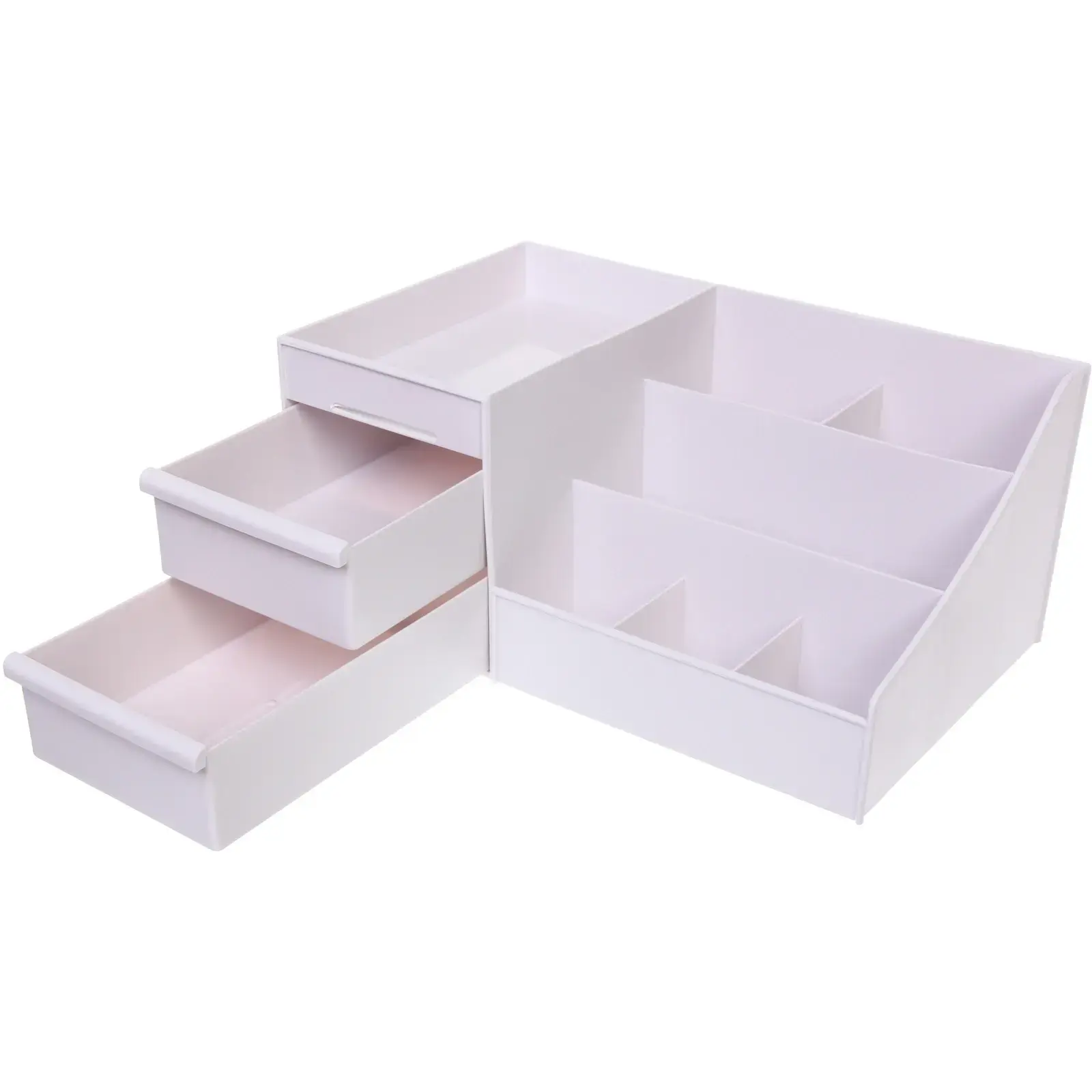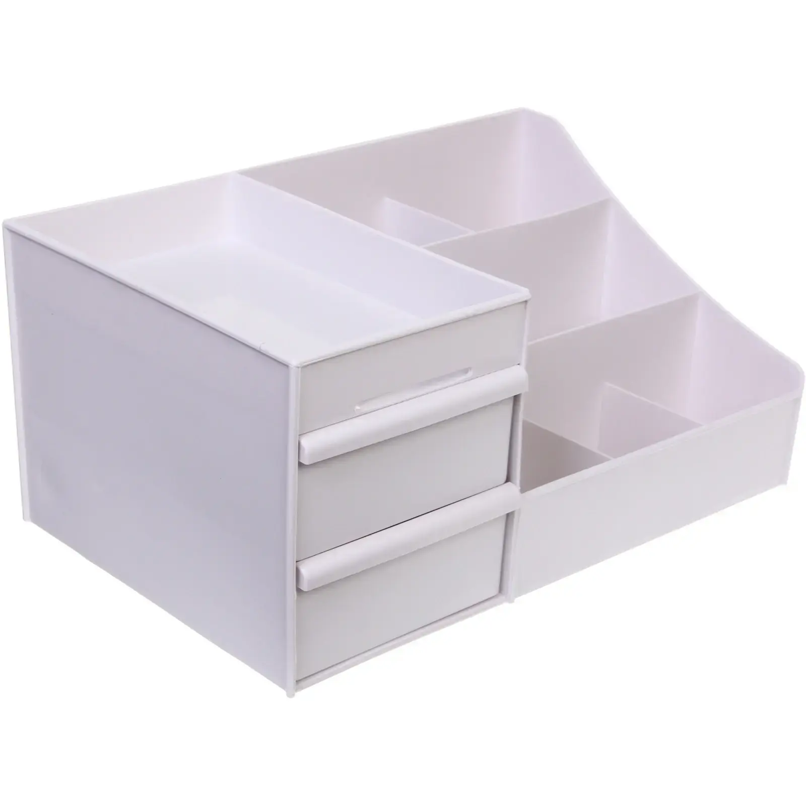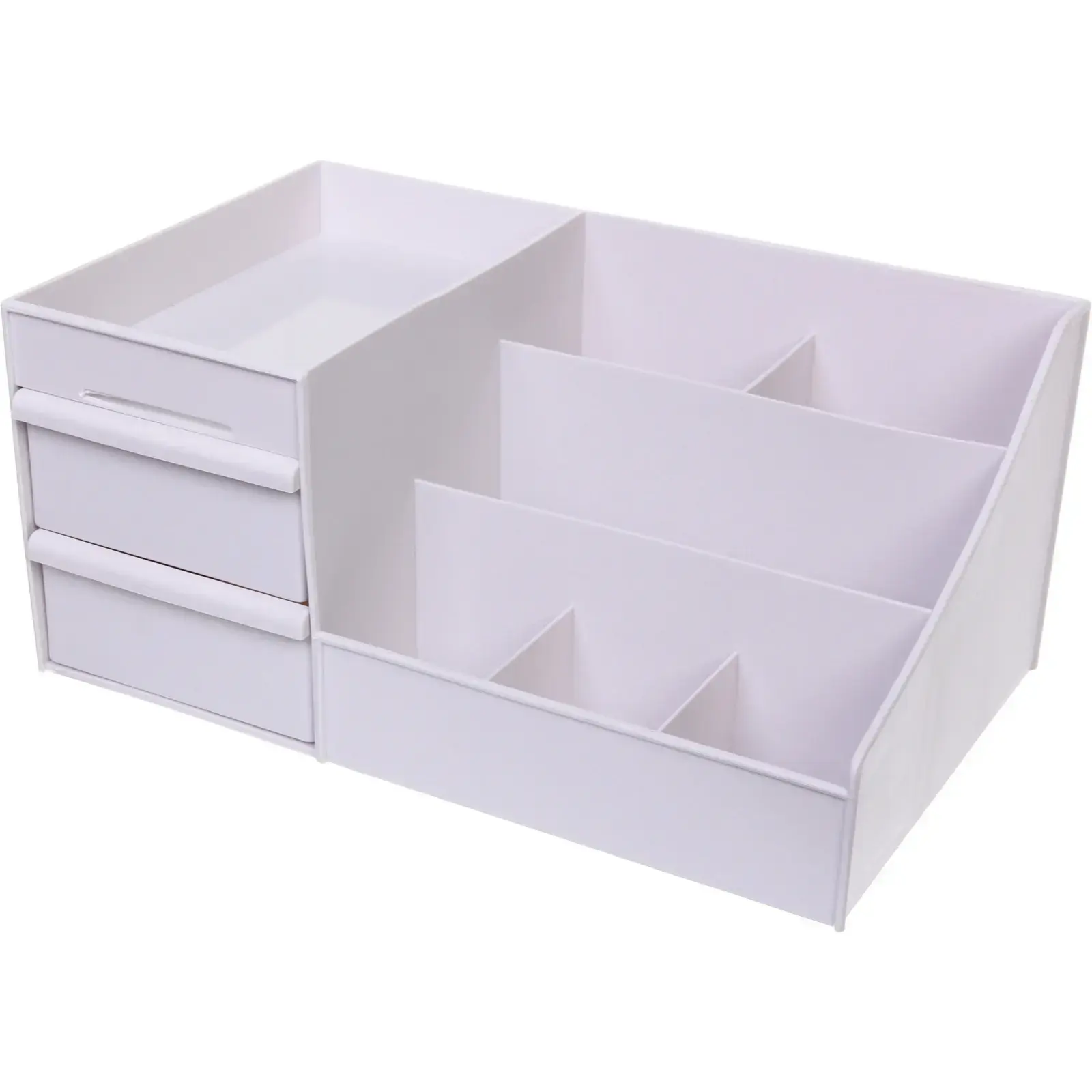 Органайзер имеет 8 отделений, включая два выдвижных ящика, что позволяет удобно сортировать и хранить различные предметы. Его размеры 35,5х22х16 см делают его компактным и удобным для размещения на столе или в ящике. Он идеально подходит для использования в офисе, на кухне или в ванной комнате.