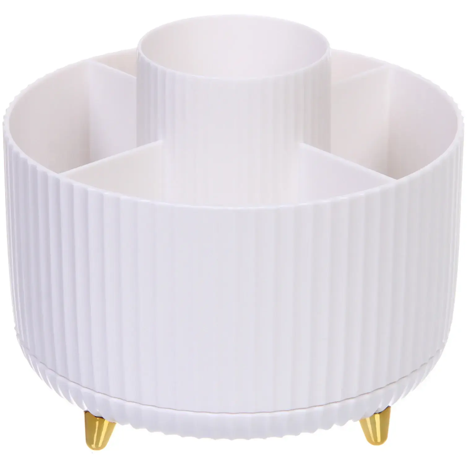 Создайте порядок и уют в вашем пространстве с органайзером для хранения «ПИАНОНО». Этот стильный и функциональный аксессуар выполнен в белом цвете и обладает уникальной возможностью поворота на 360°, что делает его идеальным решением для организации вашего рабочего стола или косметического уголка. Благодаря нескольким отделениям, включая центральное отверстие и три отдельные секции, вы сможете удобно разместить все необходимые мелочи, будь то канцелярские принадлежности, косметика или мелкие аксессуары.