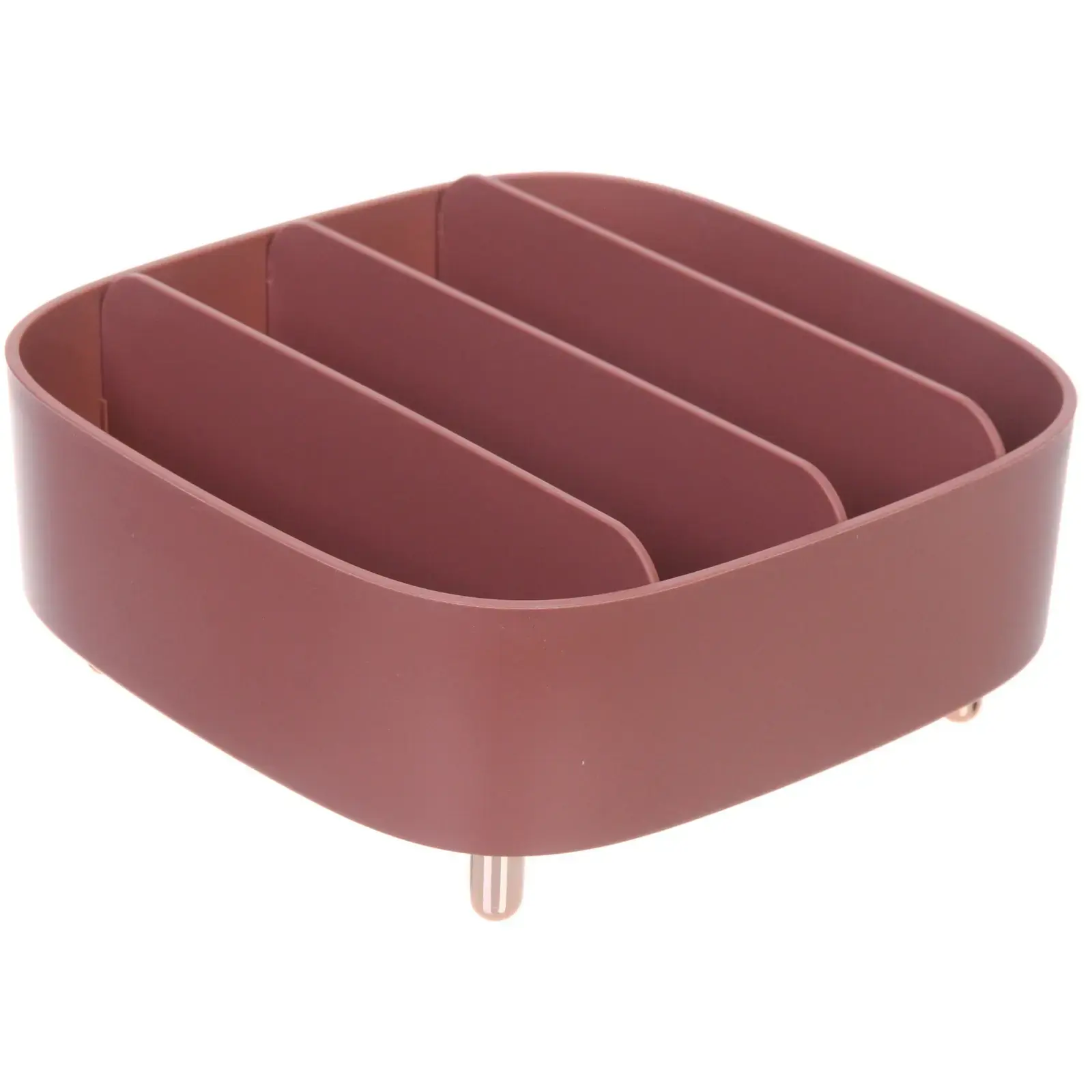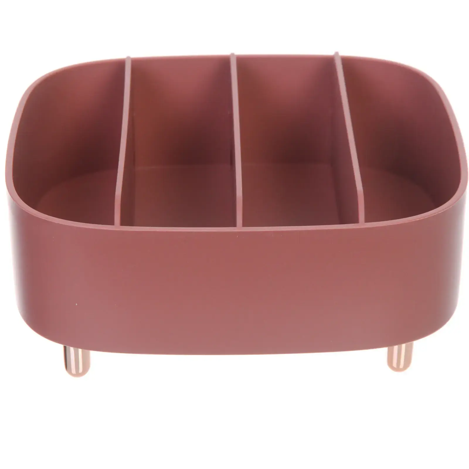 Органайзер предназначен для хранения различных мелочей, таких как канцелярские принадлежности, косметика или кухонные аксессуары. С четырьмя отделениями вы сможете удобно распределить предметы, что значительно упростит их поиск и использование. Благодаря компактным размерам 20х8,6х20,6 см, органайзер легко разместится на столе, полке или в шкафу.