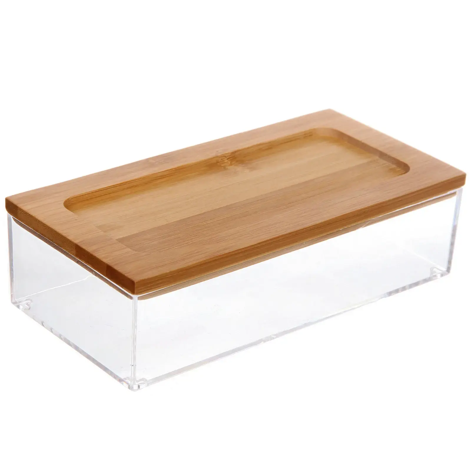 Изготовленный из качественных материалов, органайзер сочетает в себе прочность и легкость. Прозрачный пластик позволяет видеть содержимое, а бамбуковая крышка обеспечивает надежное закрытие. Размеры 19х9.5х5 см делают его идеальным для хранения мелочей, которые всегда должны быть под рукой.