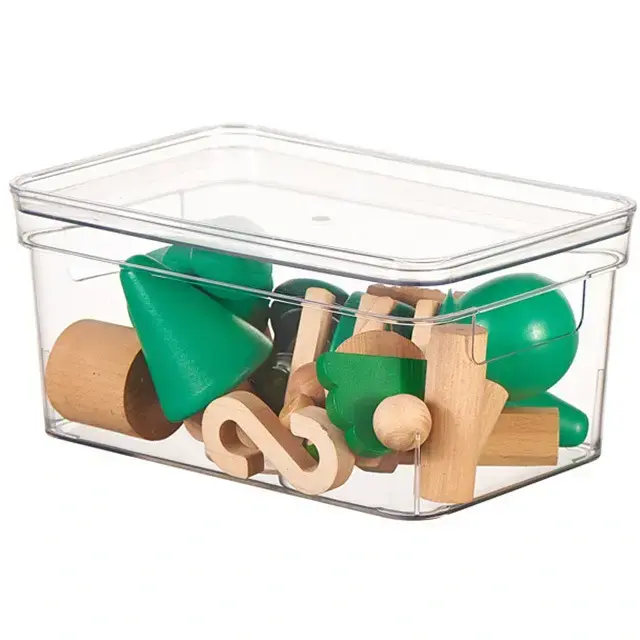 Органайзер выполнен из прочного пластика, что гарантирует долговечность и надежность. Гладкая поверхность и округленные углы делают его безопасным для детей. Удобные ручки по бокам позволяют легко перемещать контейнер, а прозрачный материал обеспечивает отличную видимость содержимого.