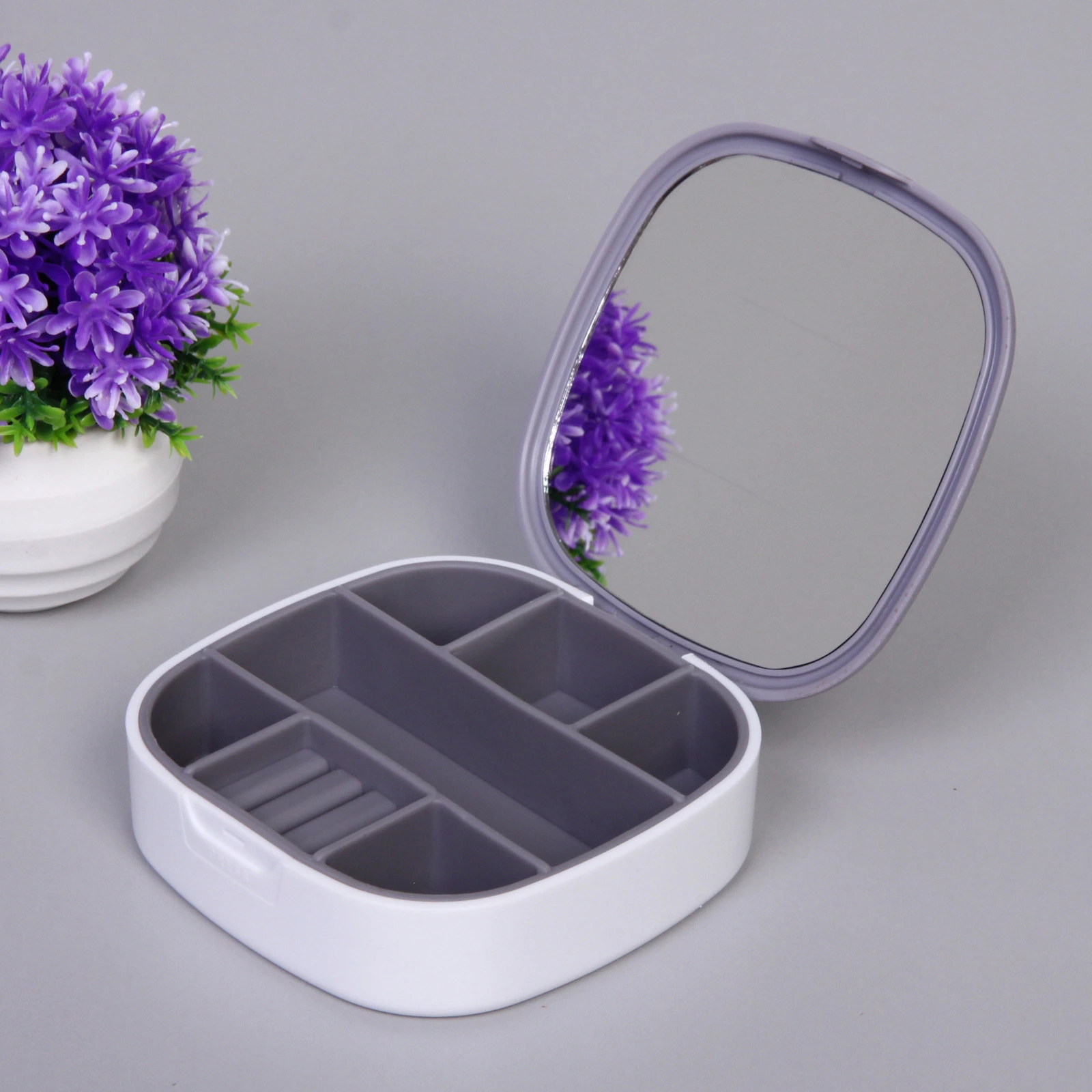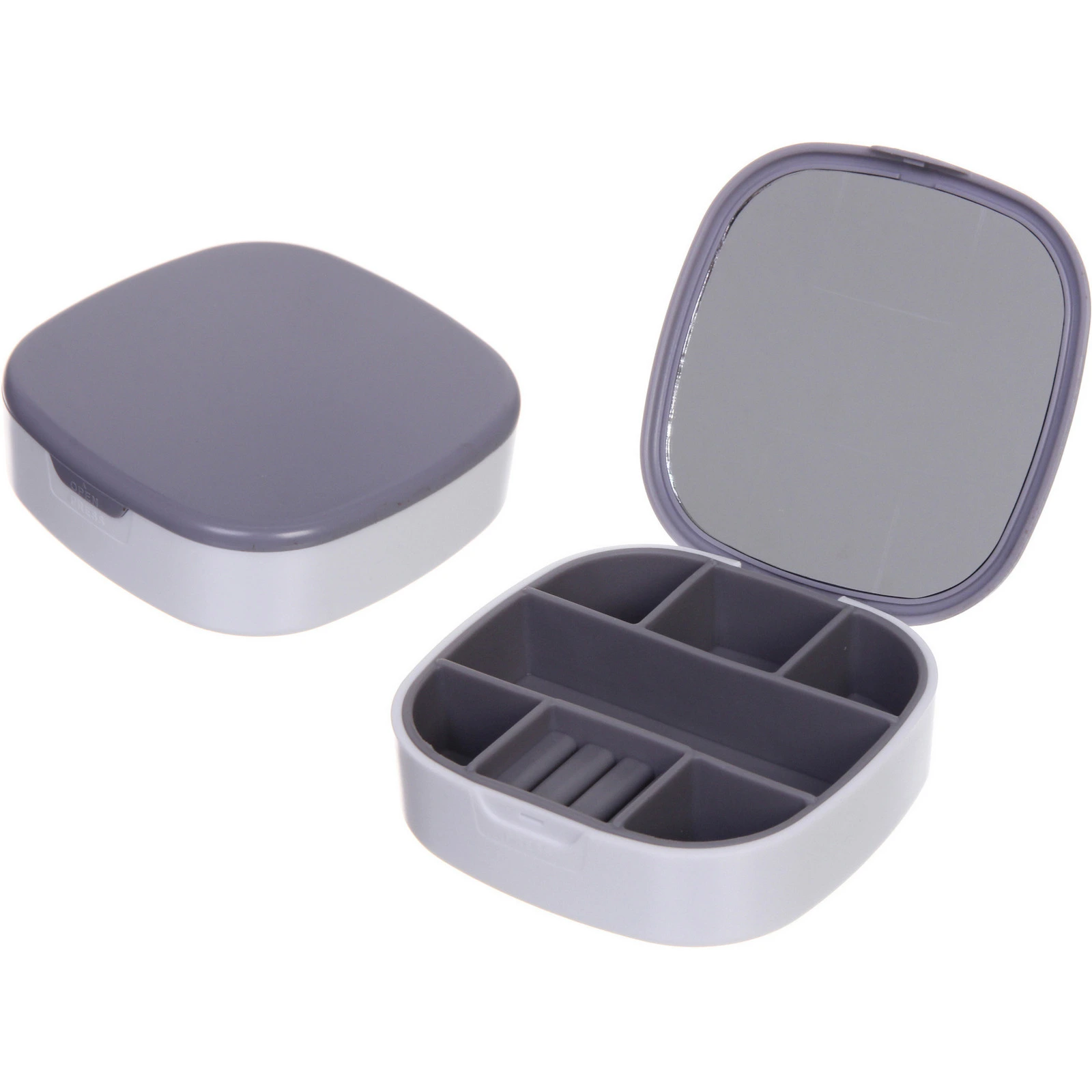 Зеркало надежно закреплено в пластиковой рамке и защищено от повреждений при закрытии органайзера.