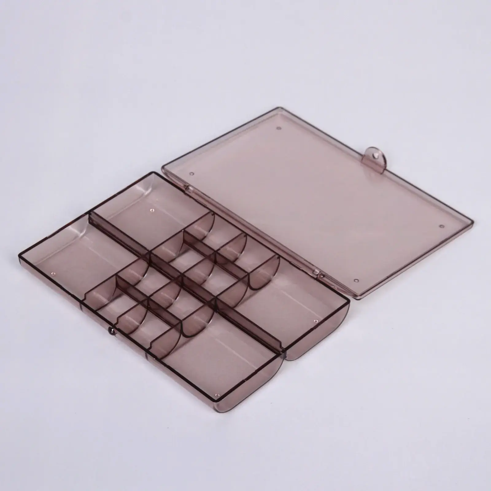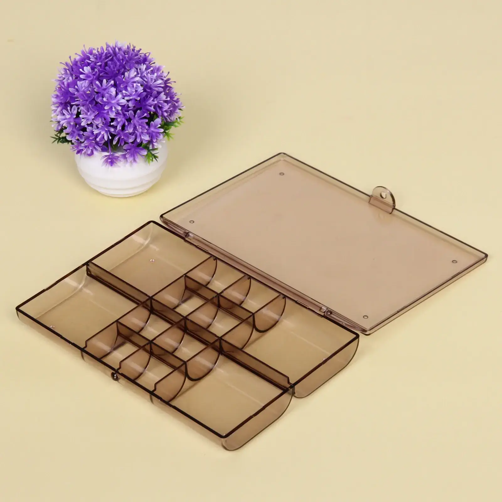 Органайзер выполнен из прочного пластика, что гарантирует долговечность и легкость в уходе. Его стильный и современный дизайн впишется в любой интерьер, а прозрачный цвет позволит вам видеть содержимое без необходимости открывать крышку. Это идеальный выбор для тех, кто ценит порядок и функциональность.