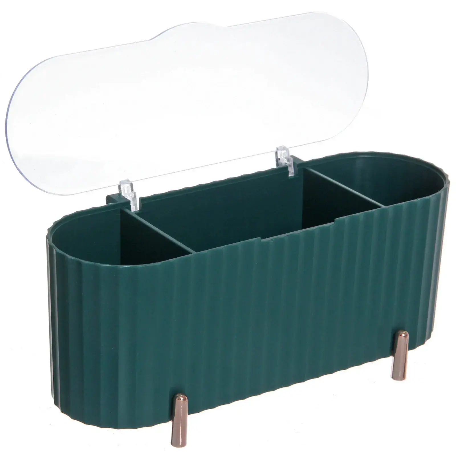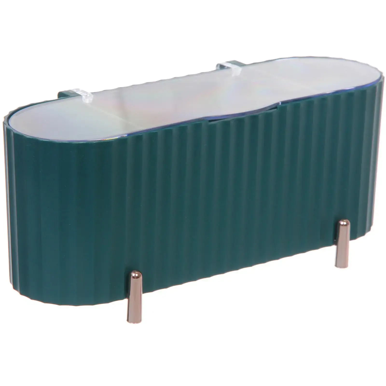 Почему стоит выбрать именно этот органайзер? Во-первых, он выполнен из качественного пластика, что обеспечивает долговечность и легкость в уходе. Во-вторых, прозрачная крышка позволяет видеть содержимое, а рифленая поверхность добавляет стильный акцент. Ножки из металла обеспечивают устойчивость и предотвращают скольжение.