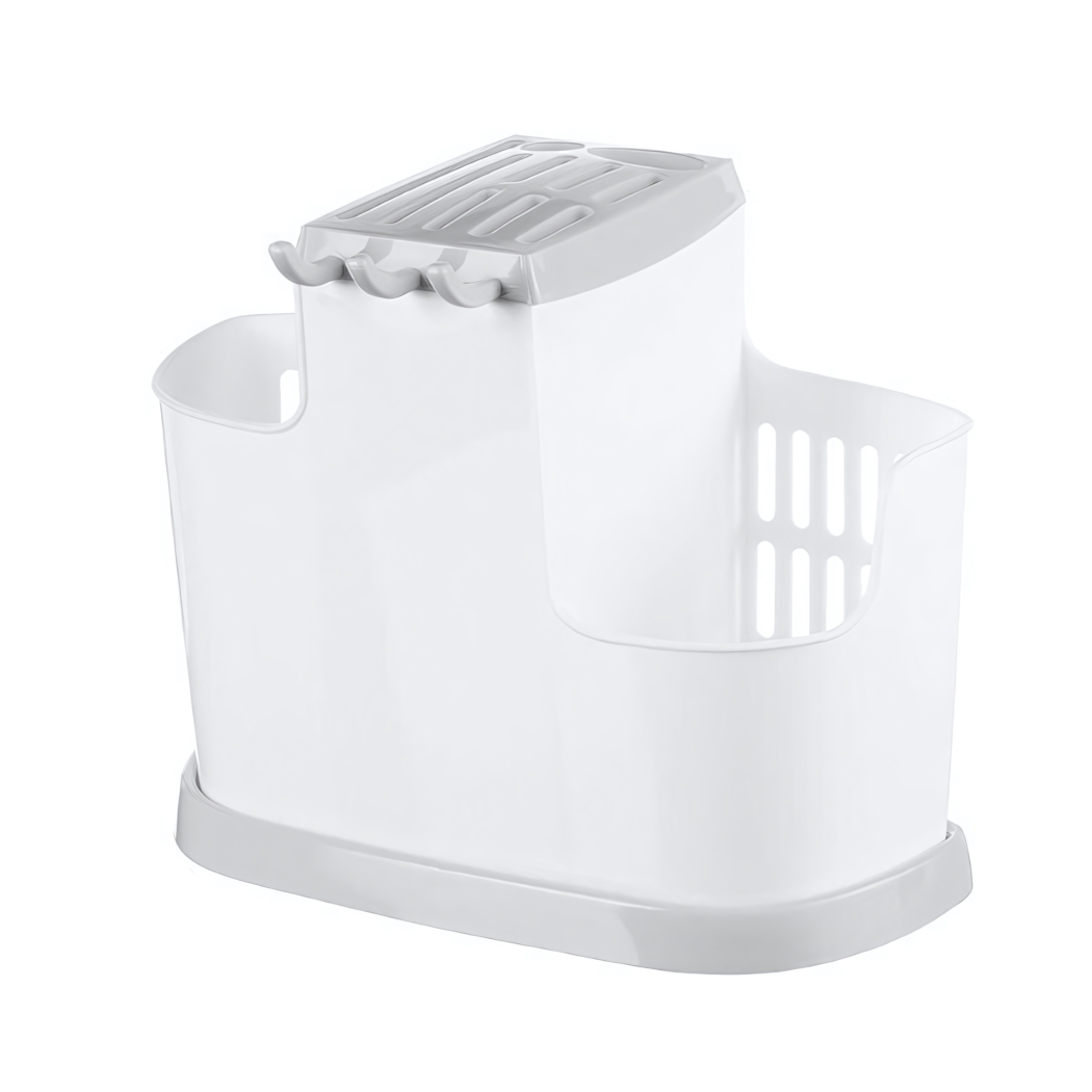 Обеспечьте порядок и удобство на вашей кухне с помощью этого организатора, который легко разместит все необходимые кухонные приборы и аксессуары. Благодаря двум отделениям разной высоты, он отлично подходит для столовых приборов, ножей, лопаток и других мелочей. Отверстия для сушки помогают держать инструменты сухими и гигиеничными, а крючки позволяют подвешивать ситечки, ножи и поварёшки.