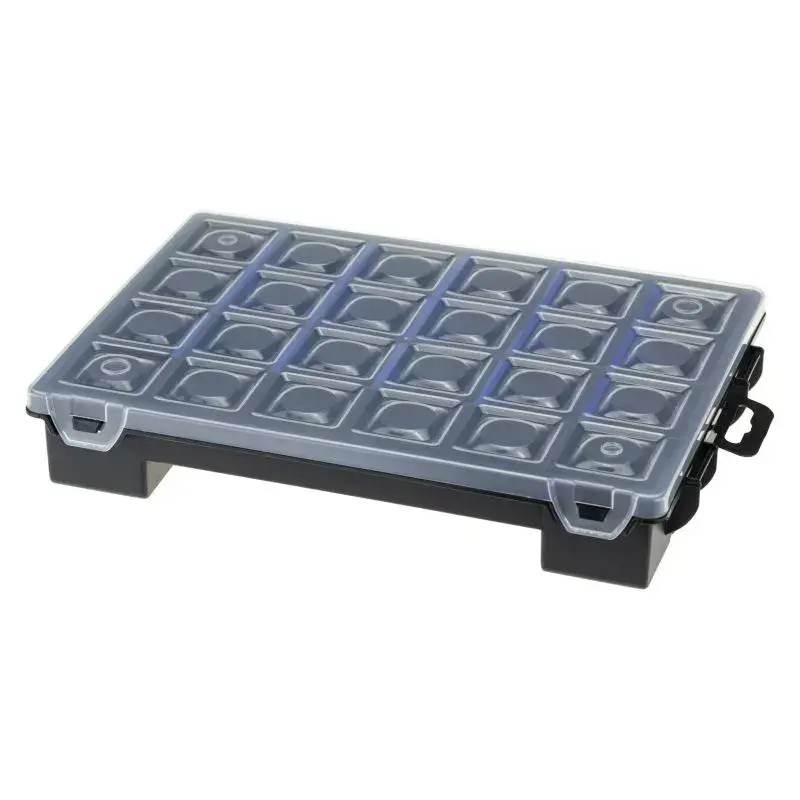 Практичный органайзер с 24 отделениями создан для идеальной систематизации мелочей. Прозрачная крышка и прочные боковые застежки защитят ваши вещи от потери, сохраняя быстрый доступ к содержимому.