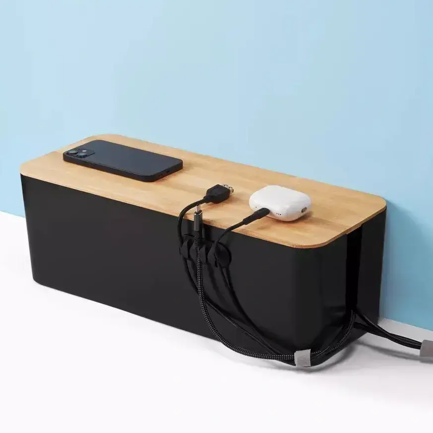 Создайте порядок в вашем пространстве с органайзером для проводов «ДОМАНИЯ». Этот стильный и функциональный аксессуар не только украсит ваш интерьер, но и поможет организовать провода и удлинители, избавляя вас от беспорядка. Его элегантный черный корпус и крышка из бамбука придают ему современный вид, который идеально впишется в любой дом или офис.