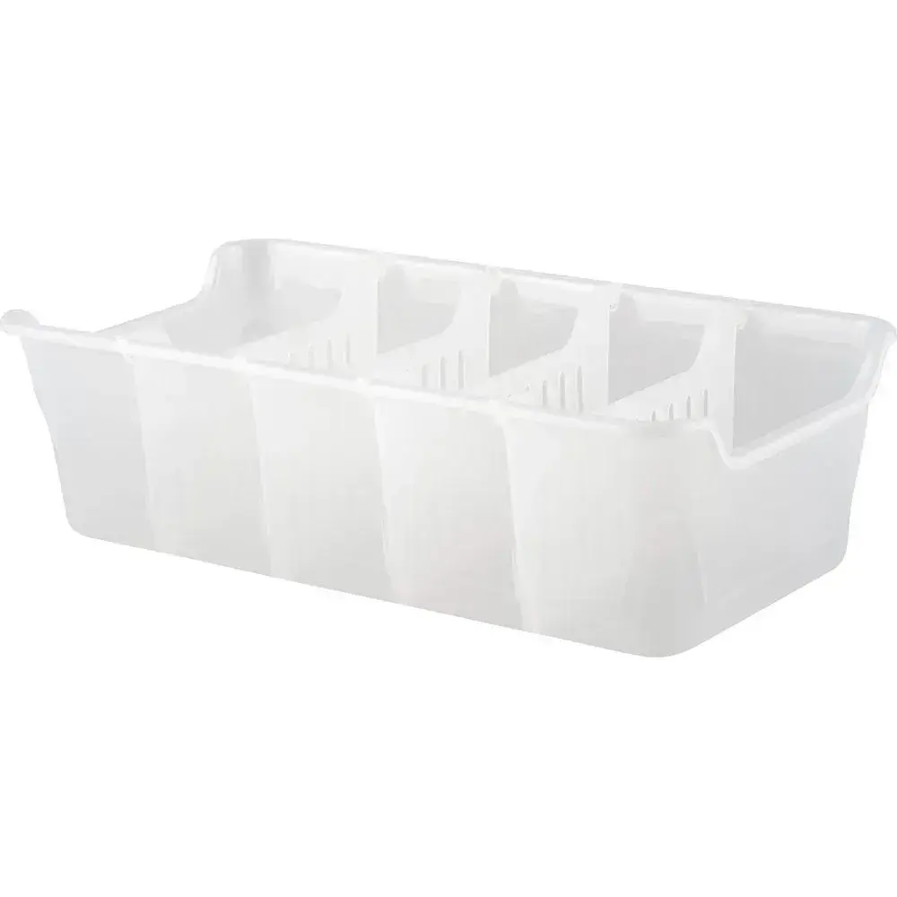 Органайзер изготовлен из пищевого пластика, устойчивого к влаге и температурным перепадам. Вертикальные перегородки предотвращают смешивание содержимого, а рельефные насечки на дне обеспечивают устойчивость. Подходит для профессиональных кухонь и домашнего использования.