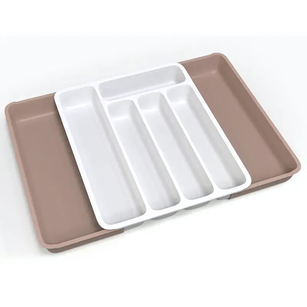Двухуровневая система хранения с продуманным разделением для идеального порядка столовых приборов. Практичное решение для современной кухни с возможностью адаптации под разные потребности.