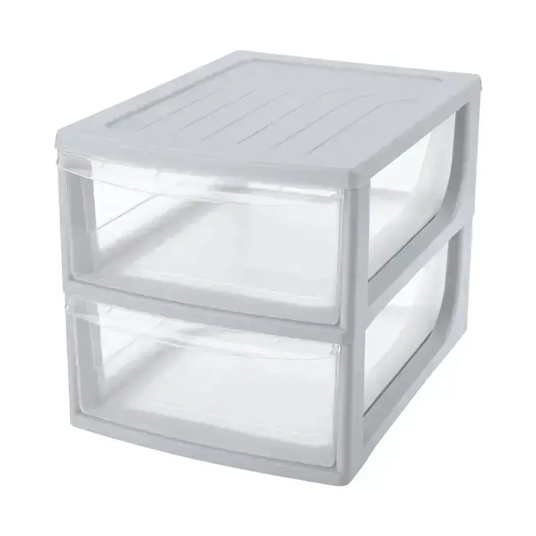 Органайзер для документов А4 с 2 ящиками, 26х26.5 см, прочный пластик, светло-серый
