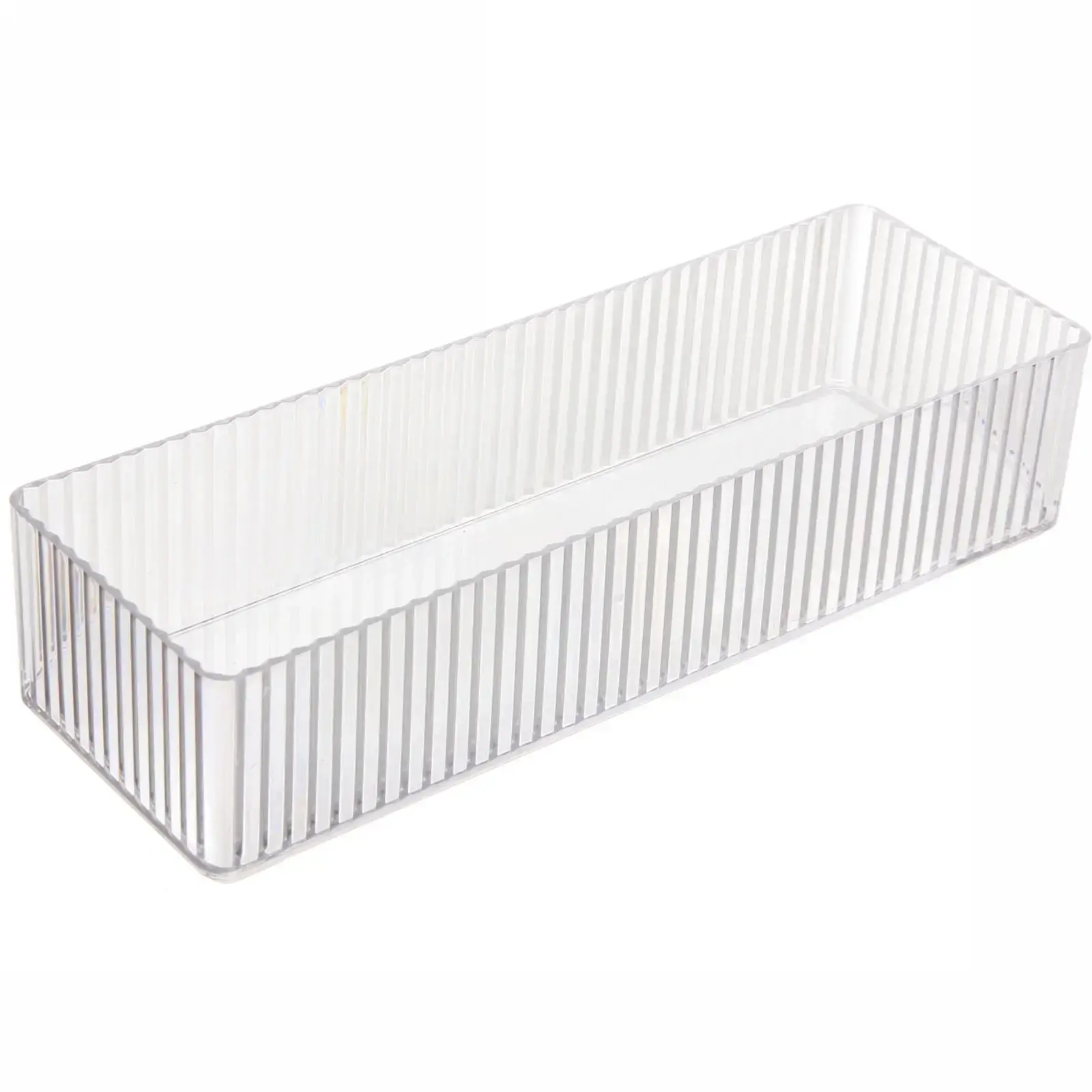 Контейнер предназначен для хранения различных предметов: от канцелярских принадлежностей до косметики. Его прямоугольная форма и рифленая текстура обеспечивают надежное сцепление с поверхностью, что делает его удобным в использовании. Прозрачный материал позволяет видеть содержимое, что экономит ваше время при поиске нужных вещей.