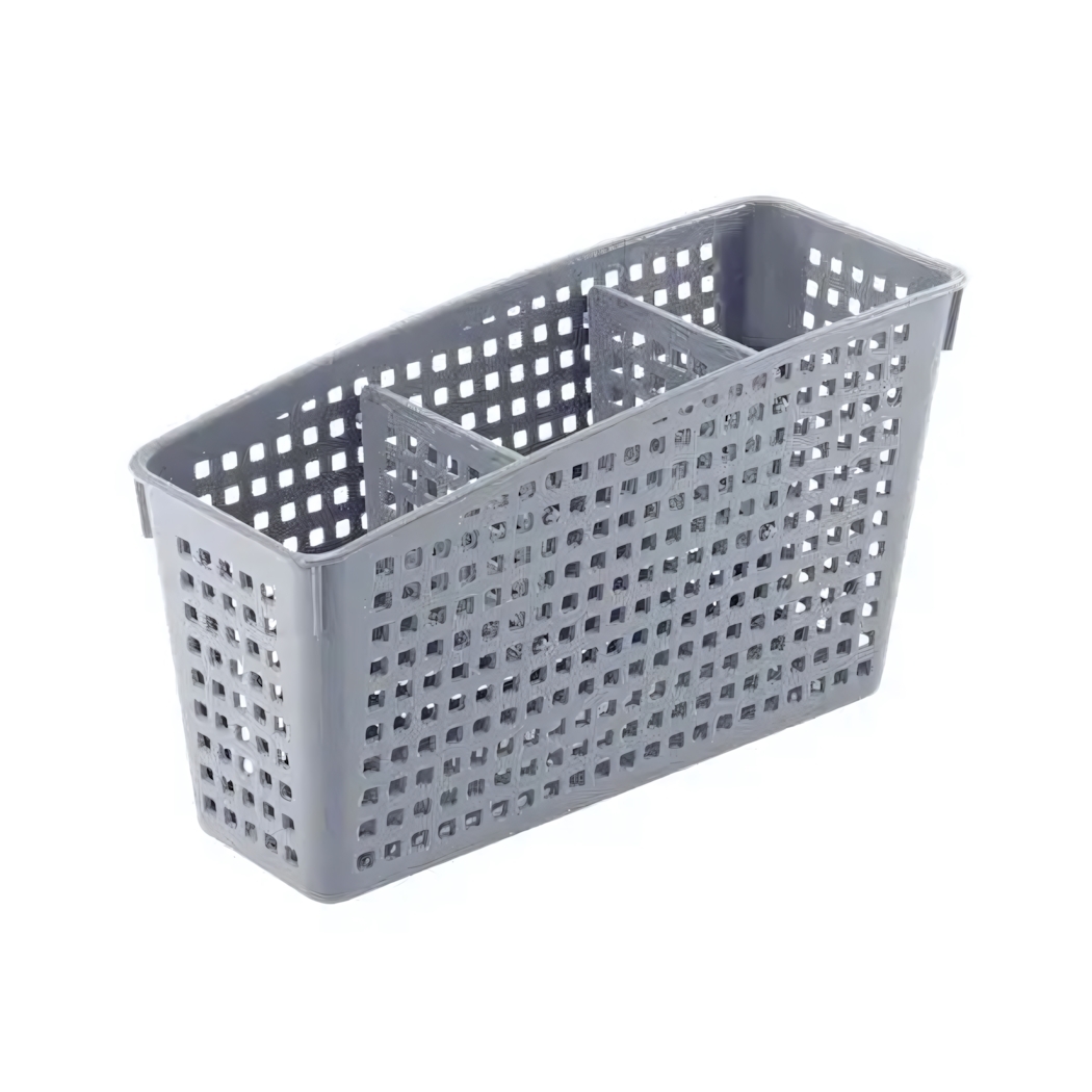Изготовлен из ударопрочного пластика, который не деформируется со временем. За счет компактных размеров 24.5х14 см легко размещается на узких полках и в ящиках. Светло-серый цвет органично вписывается в любую цветовую гамму интерьера.
