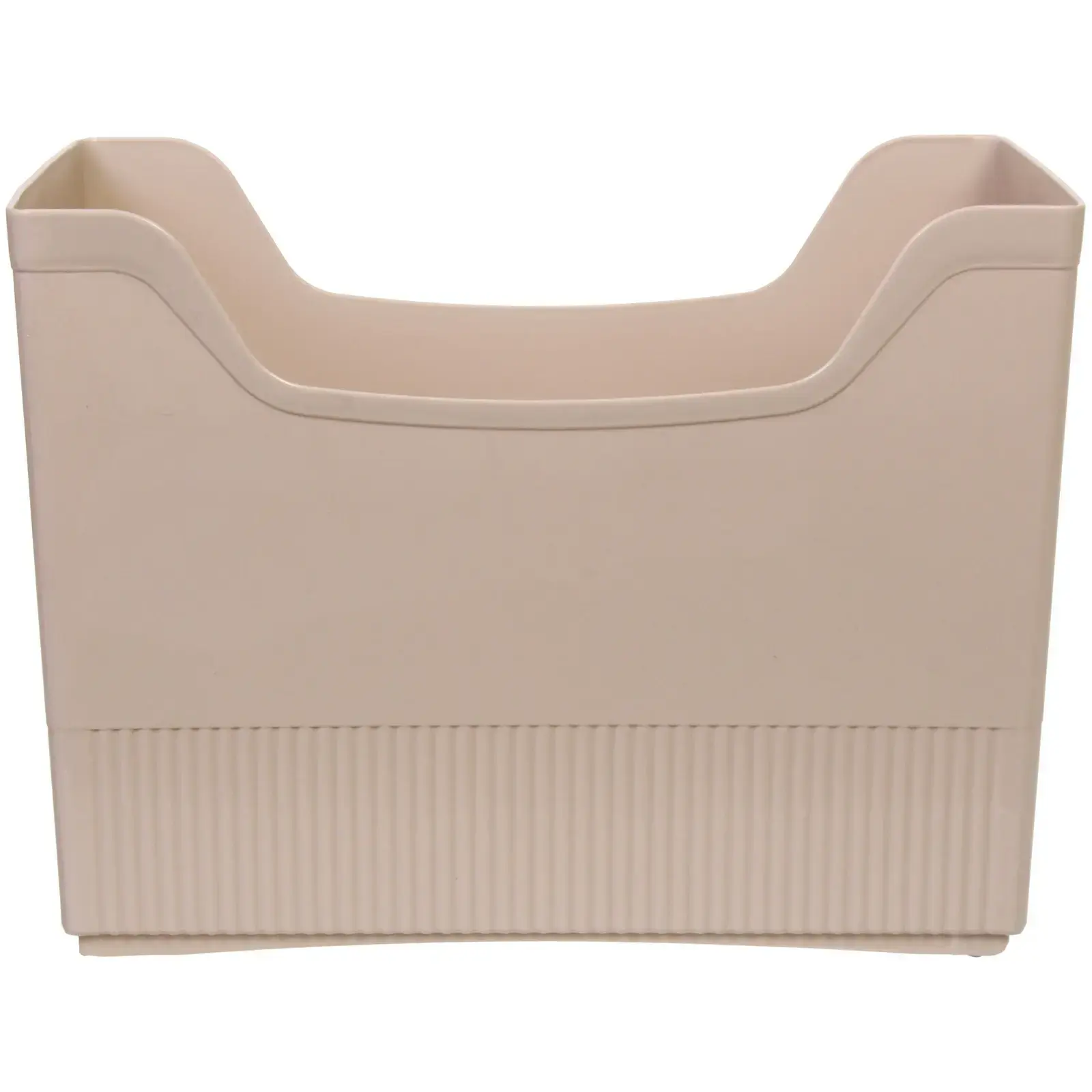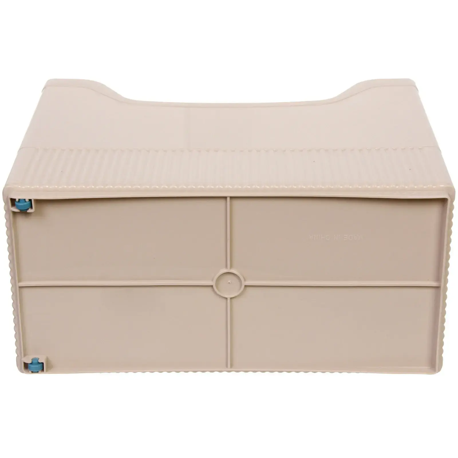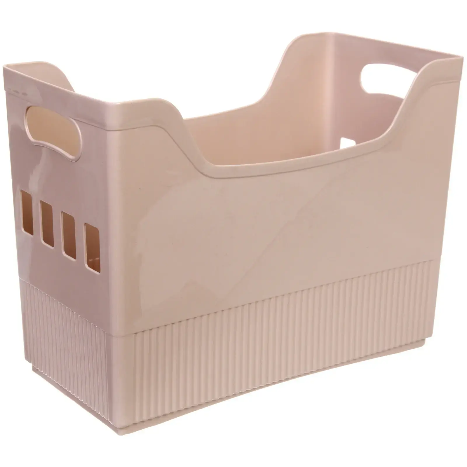 Размер органайзера — 33.6×17.2×25.2см, цвет — сдержанный бежевый, что легко сочетается с интерьером любой комнаты. Прямоугольная форма и эргономичные ручки делают обращение максимально удобным, а рифлёное дно и вентиляционные отверстия способствуют стабильности и циркуляции воздуха.