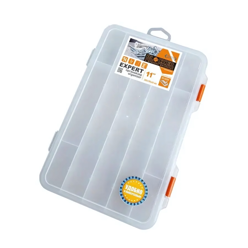 Используйте для сортировки крепежей, электронных компонентов, швейной фурнитуры или рыболовных снастей. Подходит для организации рабочего места столяра, автослесаря или рукодельницы. Произведено в России из экологичного пластика без запаха.