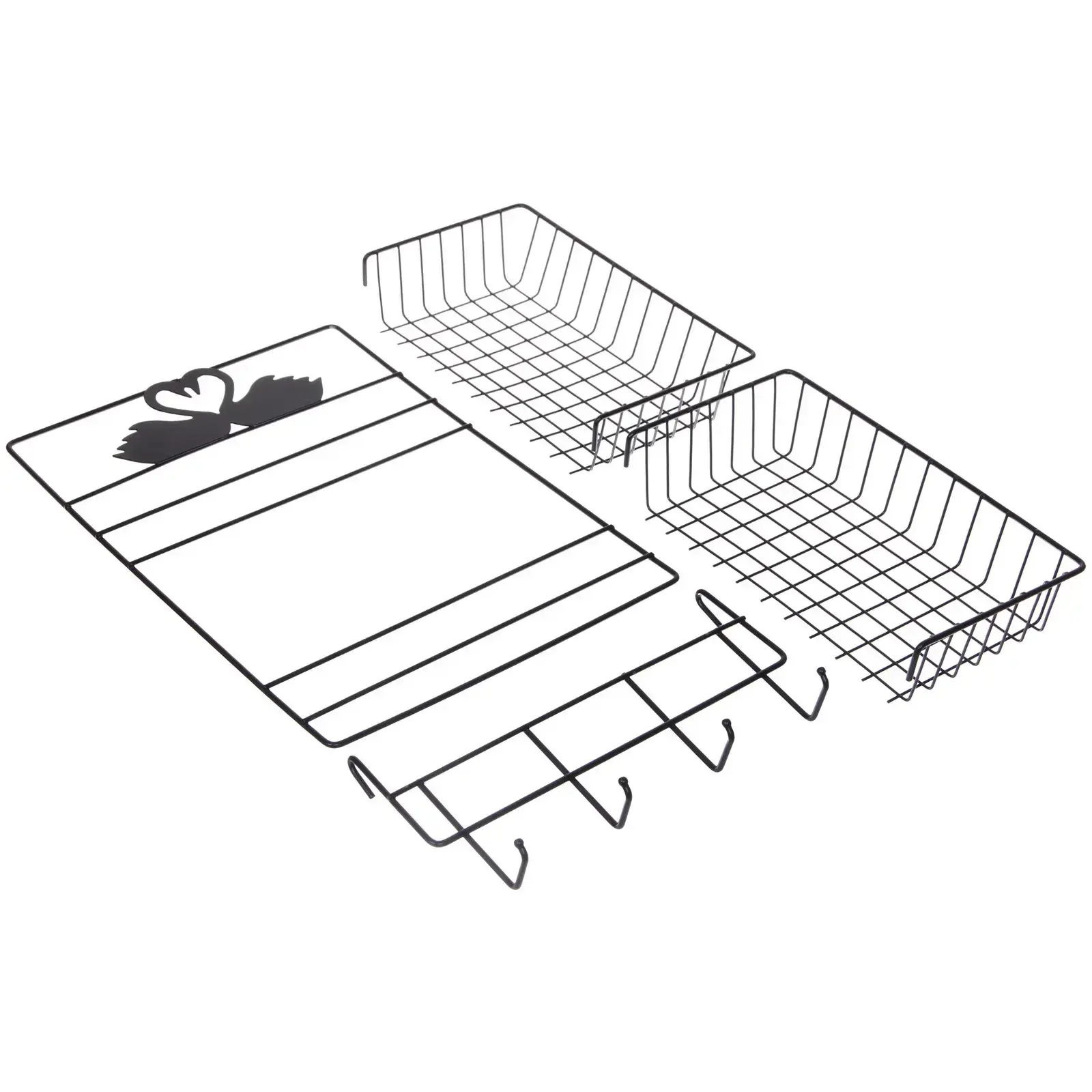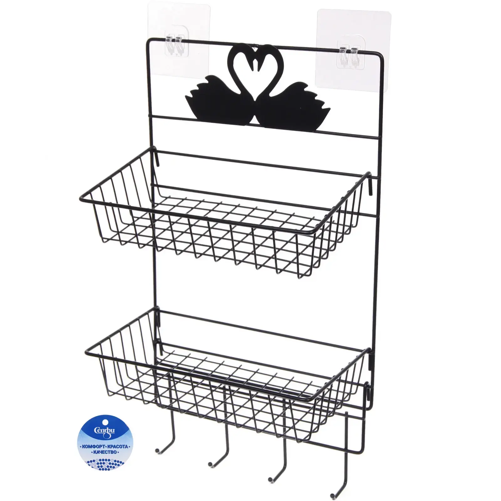 Органайзер выполнен из прочного металла, что обеспечивает долговечность и надежность. Сетчатая структура корзин позволяет видеть содержимое и обеспечивает хорошую вентиляцию. Декоративные элементы в виде лебедей добавляют изюминку и делают органайзер не только практичным, но и стильным.