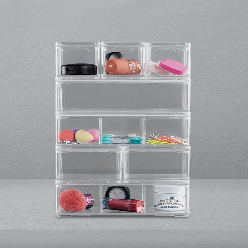 Идеальное решение для хранения косметики, аксессуаров и мелких предметов. Прозрачные стенки обеспечивают быстрый поиск нужных вещей, а прочный пластик гарантирует долговечность даже при активном использовании.