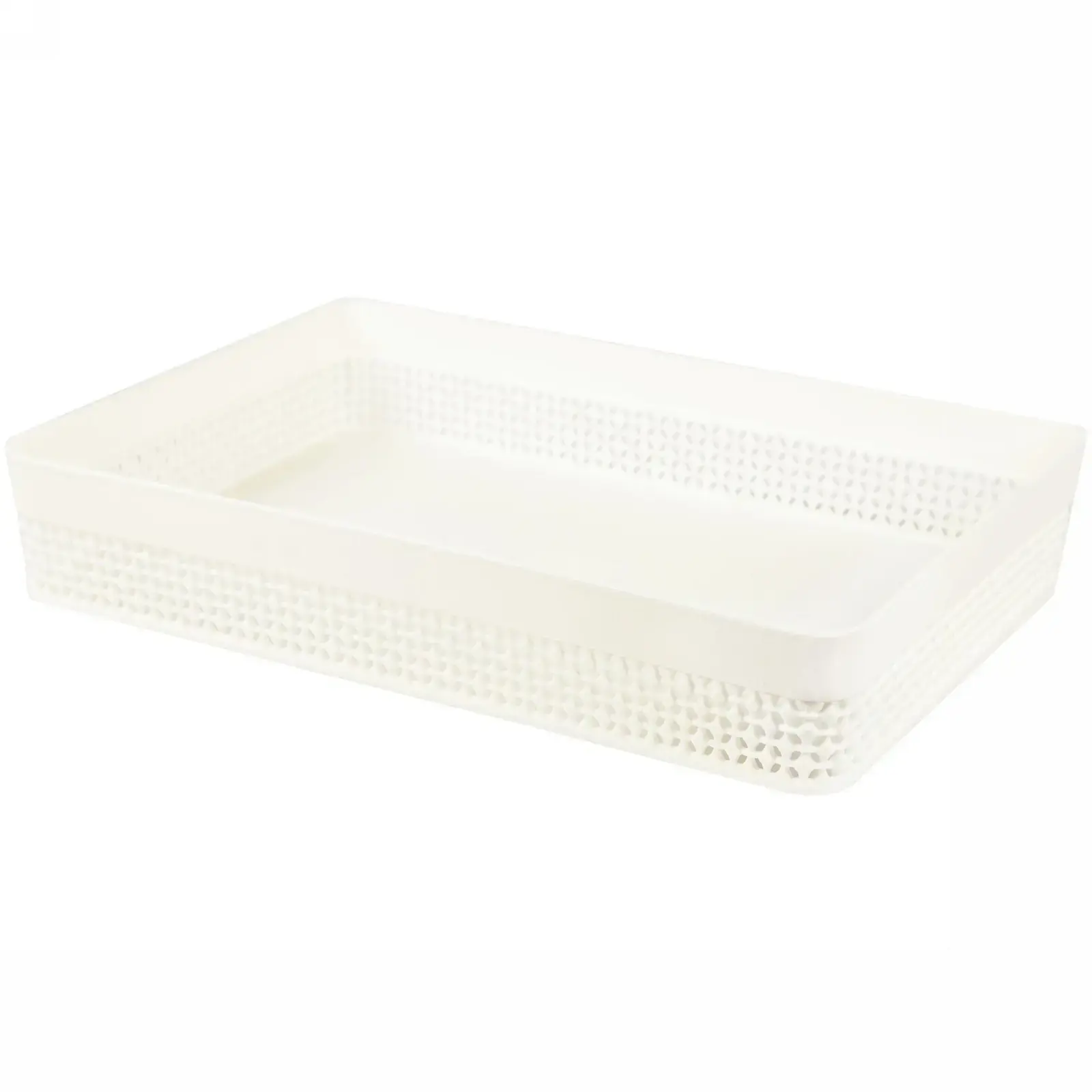 Органайзер имеет компактные габариты (33.7 см в длину, 24 см в ширину, 6 см в высоту), что позволяет хранить даже объемные предметы. Молочный цвет гармонично впишется в любую палитру интерьера, а матовая текстура пластика предотвращает появление царапин. Благодаря открытой конструкции вы всегда видите содержимое и быстро находите нужное.