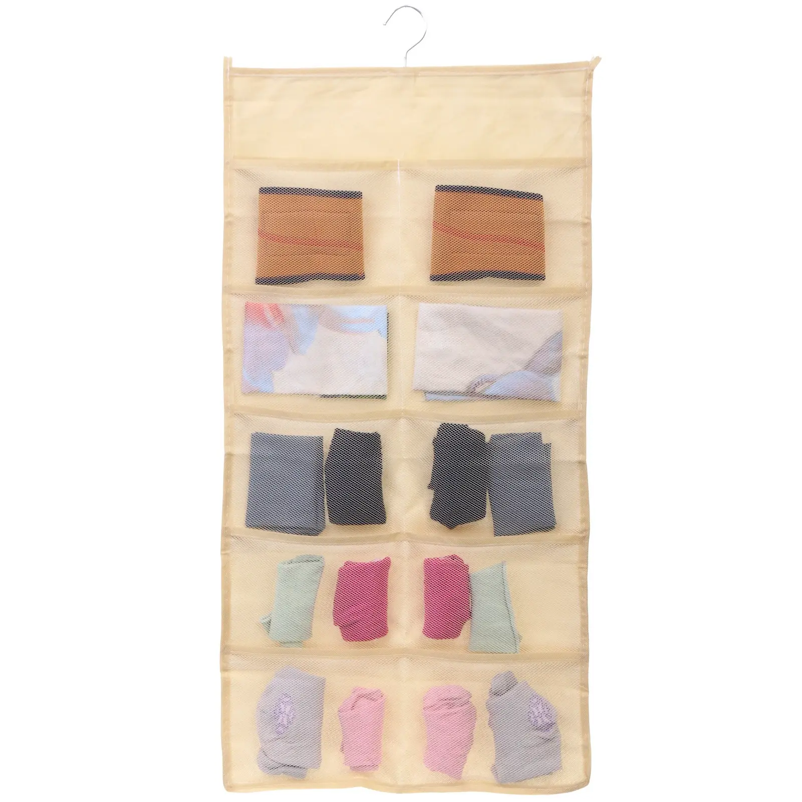 Ищете способ упорядочить свои вещи и освободить пространство? Двухсторонний подвесной органайзер «ИДЕЯДОМА» — это идеальное решение для хранения мелких предметов, таких как носки, аксессуары или косметика. Его стильный бежевый цвет и функциональный дизайн помогут вам создать порядок в вашем доме.