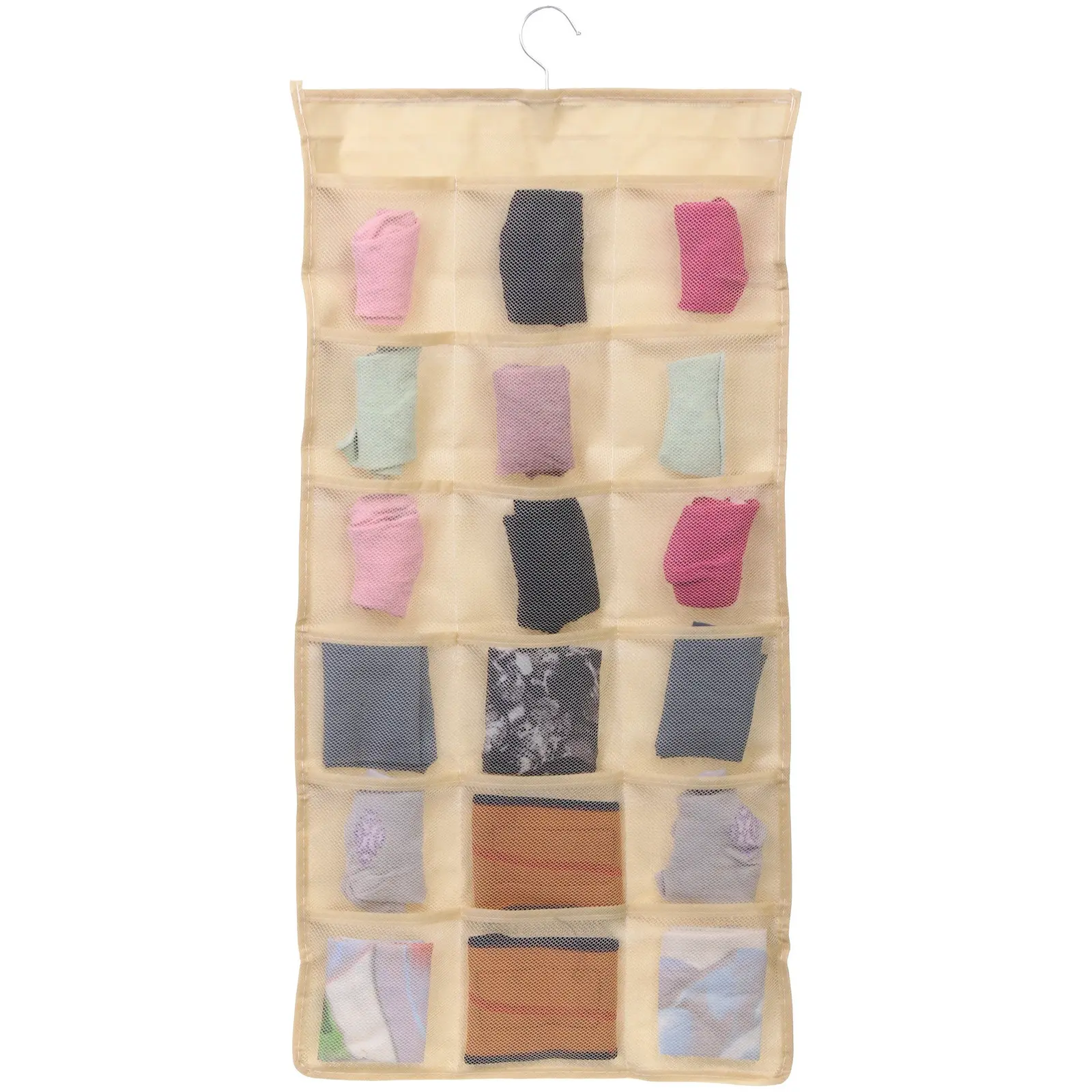 Органайзер выполнен из качественного нетканого материала, который обеспечивает долговечность и надежность. Его бежевый цвет гармонично впишется в любой интерьер, а сетчатые карманы позволяют видеть содержимое, что упрощает доступ к вещам. Вы сможете быстро находить нужные предметы, не тратя время на поиски.