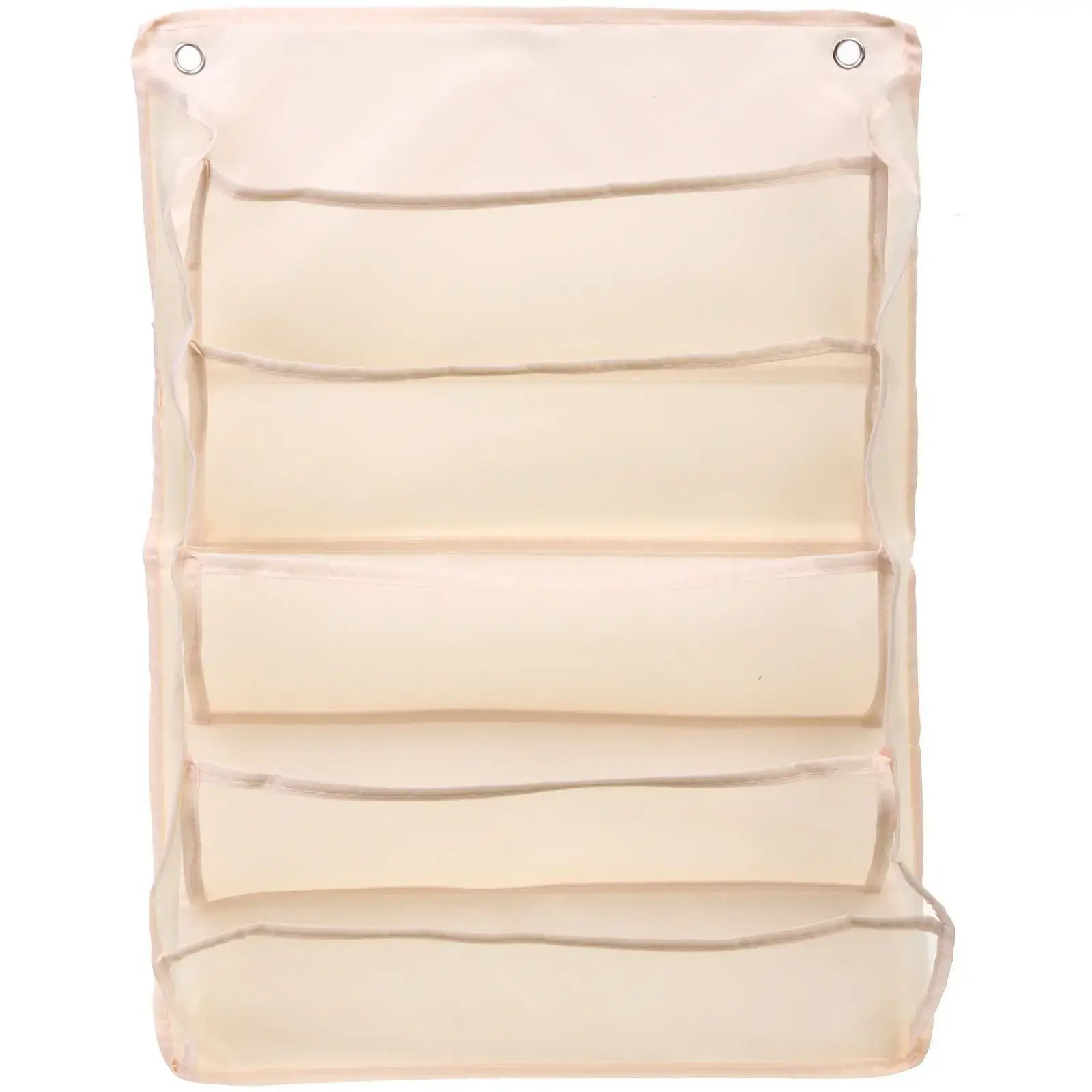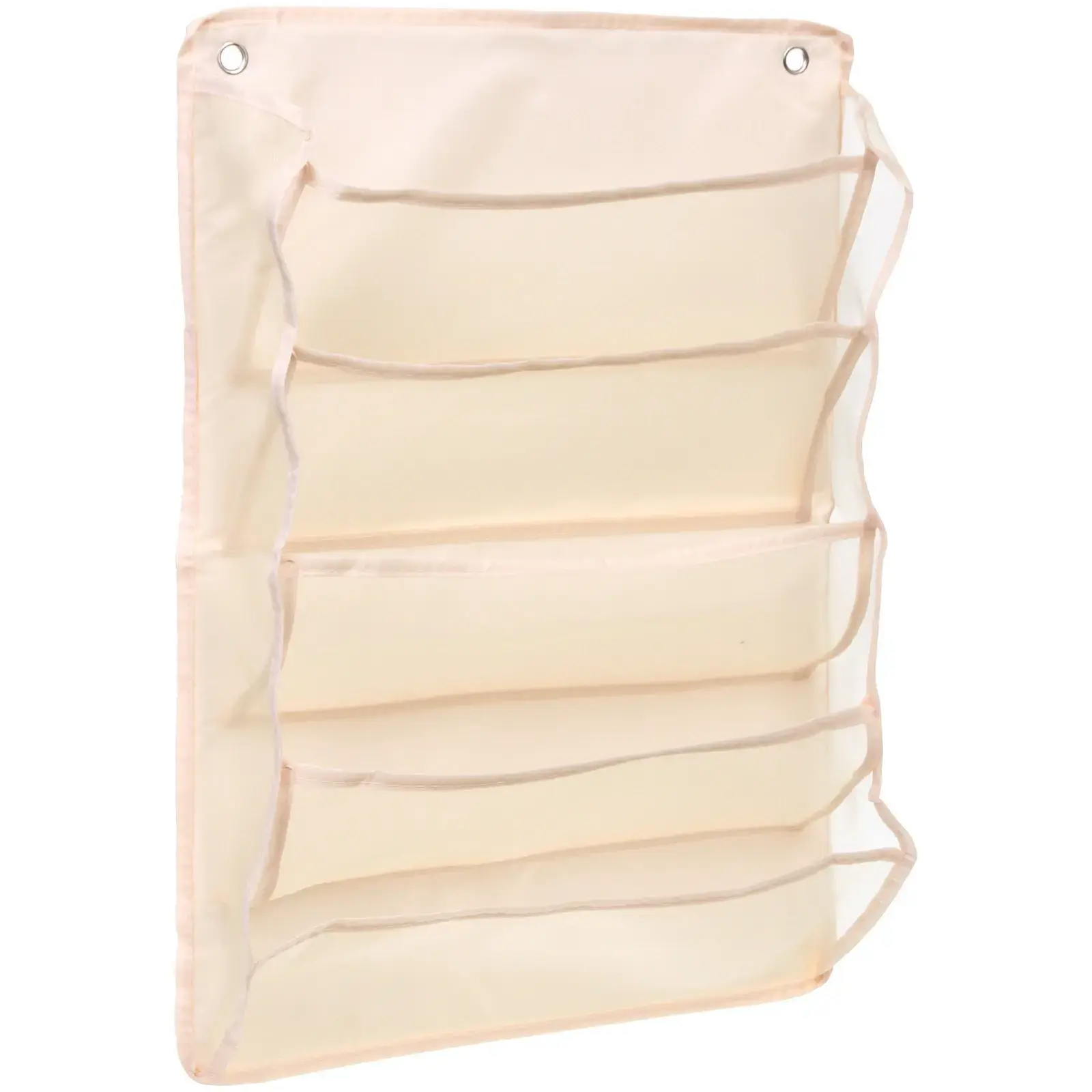 Органайзер имеет пять открытых карманов, которые разделены по горизонтали, что позволяет удобно размещать в них различные предметы. Его светлый бежевый цвет и прозрачные вставки делают его не только функциональным, но и стильным элементом вашего интерьера. Не упустите возможность сделать вашу жизнь более организованной с помощью этого замечательного органайзера!