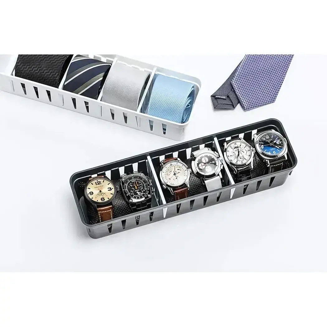 Создайте систему хранения мечты для аксессуаров, часов и мелких вещей! Прочные перегородки адаптируются под любой размер предметов, гарантируя аккуратность и мгременный доступ к нужным вещам.