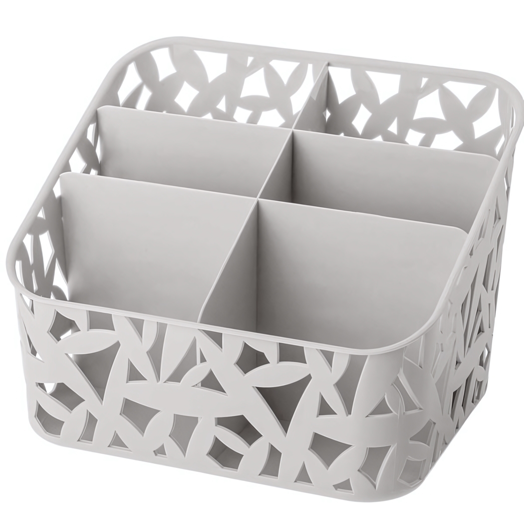 Органайзер имеет четыре секции, что позволяет удобно распределить пространство для хранения. Его можно использовать как на столе, так и в ящиках, что делает его универсальным решением для любого помещения. Изготовленный из прочного пластика, он легкий и долговечный, что гарантирует долгий срок службы.