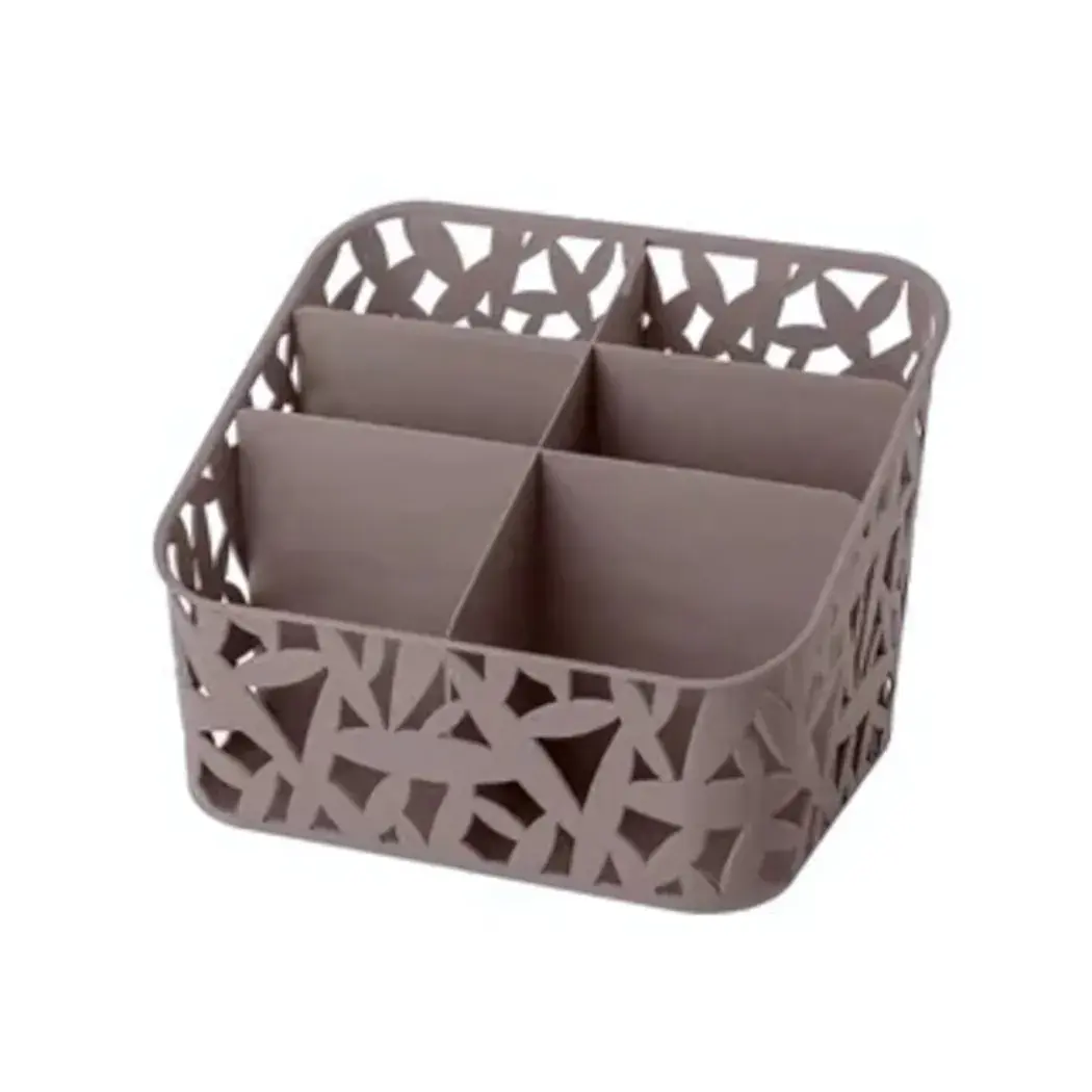 Органайзер имеет квадратную форму и состоит из четырех секций, что позволяет удобно разделять и хранить различные предметы. Он идеально подходит для использования в офисе, ванной комнате или на кухне. Благодаря открытым боковым стенкам, вы всегда будете видеть содержимое, что значительно упрощает доступ к нужным вещам.