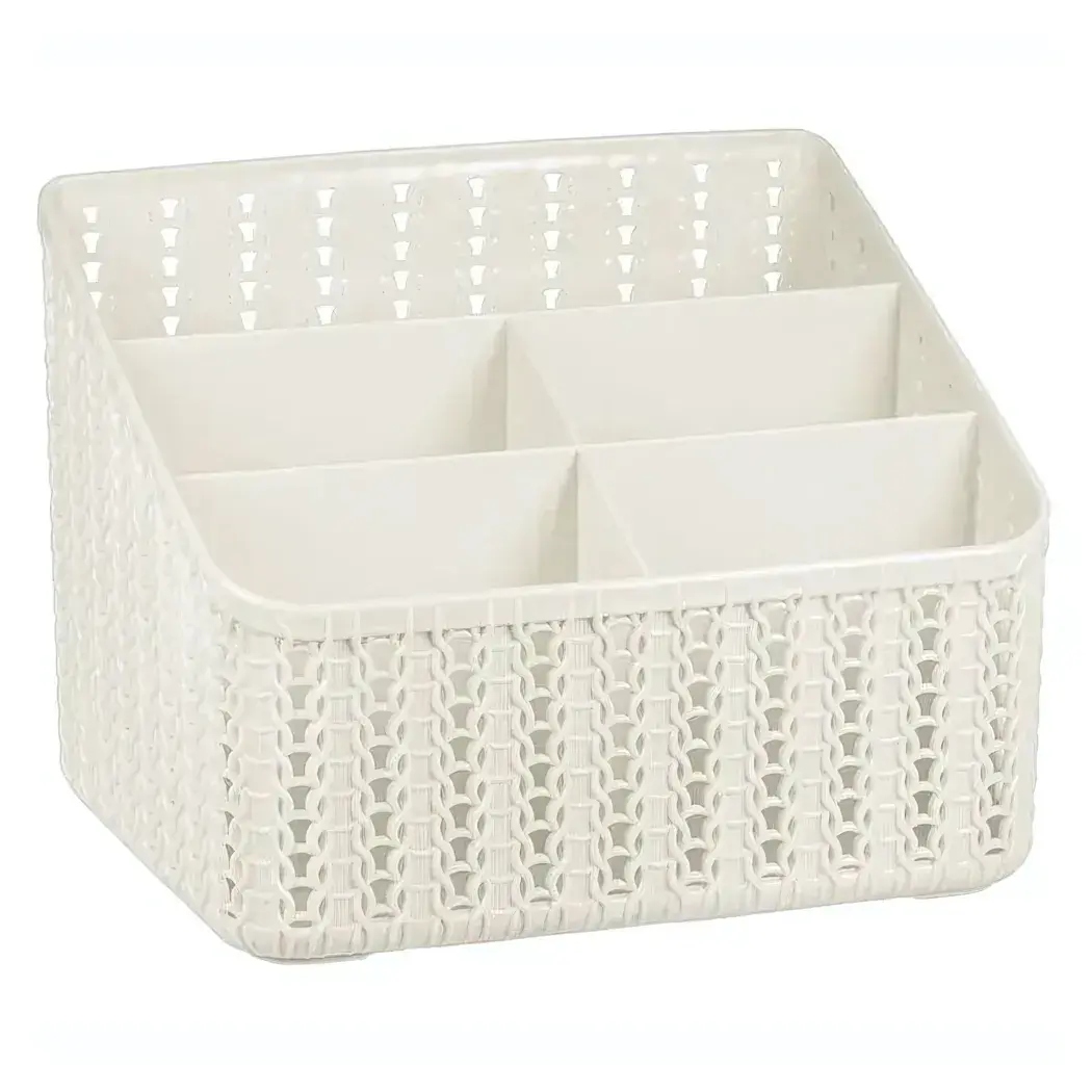 Органайзер для хранения, 5 секций, белый, пластик с плетением, компактный