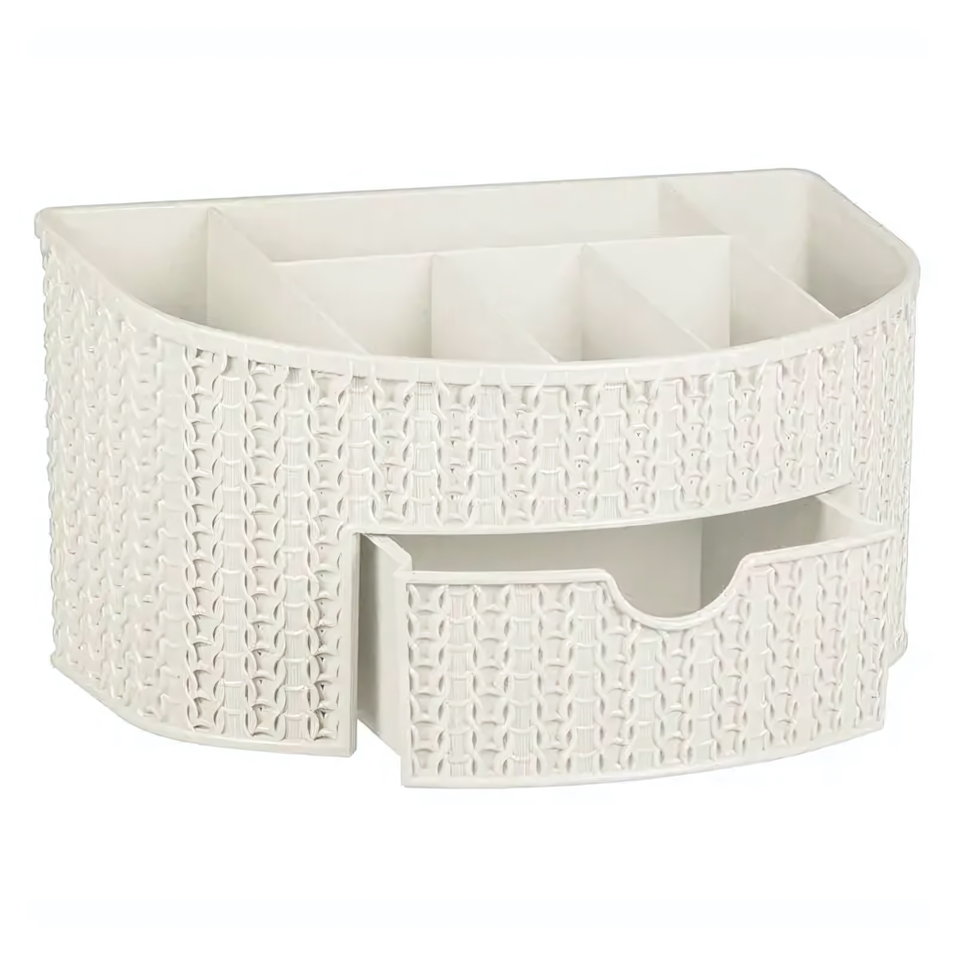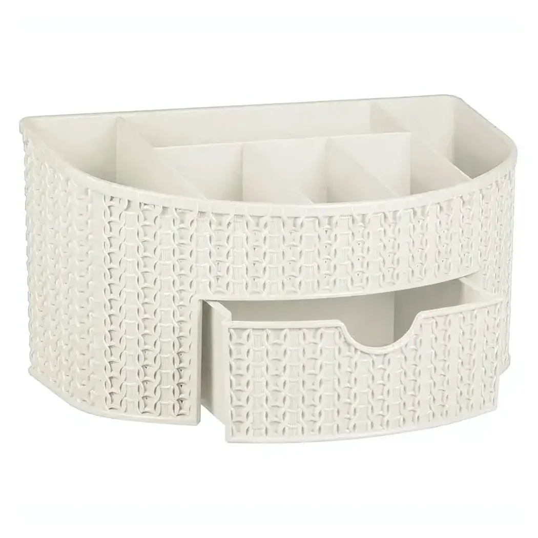 Органайзер для хранения с ящиком, белый ротанг, размер 30х20х15см