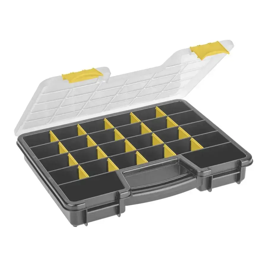 10 многосекционных контейнеров с продуманной системой хранения помогут содержать мастерскую в идеальном порядке. Жёсткие перегородки и надёжные защёлки гарантируют сохранность даже мелких деталей при транспортировке.