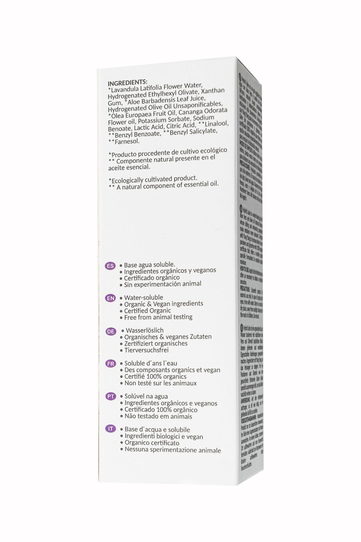 Lavandula Latifolia Flower Water, Hydrogenated Ethylhexyl Olivate, Xanthan Gum, *Aloe Barbadensis Leaf Juice, Hydrogenated Olive Oil Unsaponifiable, *Olea Europaea Fruit Oil, Cananga Odorata Flower Oil, Potassium Sorbate, Sodium Benzoate, Lactic Acid, Citric Acid, **Linalool, **Benzyl Benzoate, **Benzyl Salicylate, **Farnesol