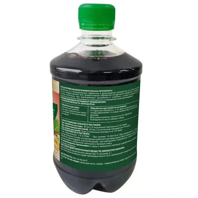 Объем упаковки составляет 0,45 литра, что достаточно для обработки значительной площади. Удобная пластиковая бутылка с зеленой крышкой позволяет легко дозировать и хранить продукт. Убедитесь, что храните удобрение в недоступном для детей месте при температуре от +5 до +25 °C. Срок хранения составляет 5 лет с даты изготовления.