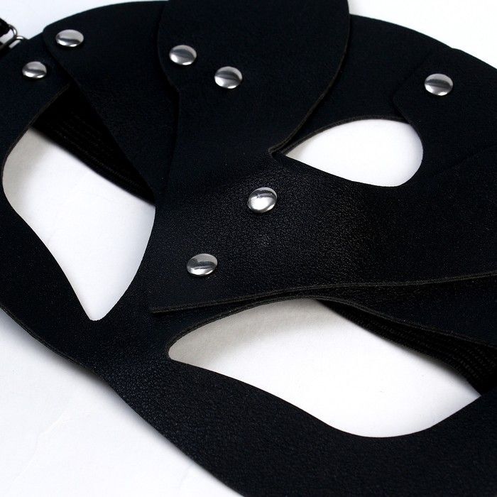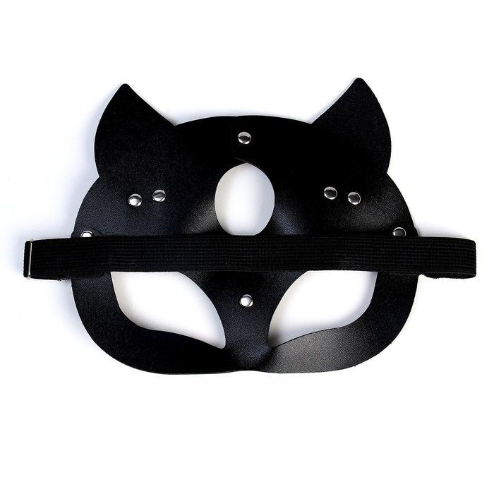 Маска выполнена в черном цвете и имеет ушки, что придает ей характерный вид. Она изготовлена из искусственной кожи и металла, что делает ее не только стильной, но и прочной. Размеры маски не указаны, но она предназначена для большинства взрослых. Не упустите возможность добавить этот уникальный аксессуар в свою коллекцию!